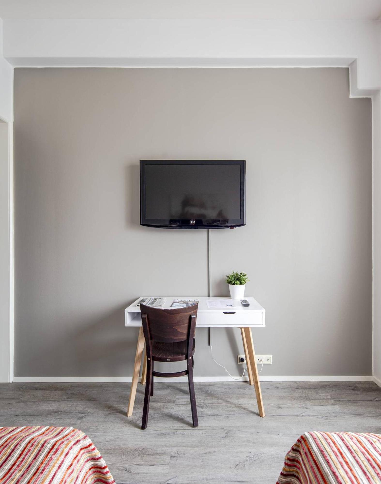 Ikkuna vaimensi aika hyvin ulkona olevan baarin metelin. Oli edes tuuletin.