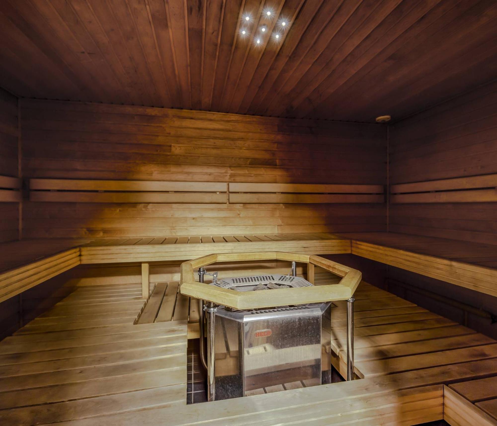 Guest rooms feature amenities like a TV with cable channels, while suites offer a touch of luxury with private spa baths or saunas for relaxation.