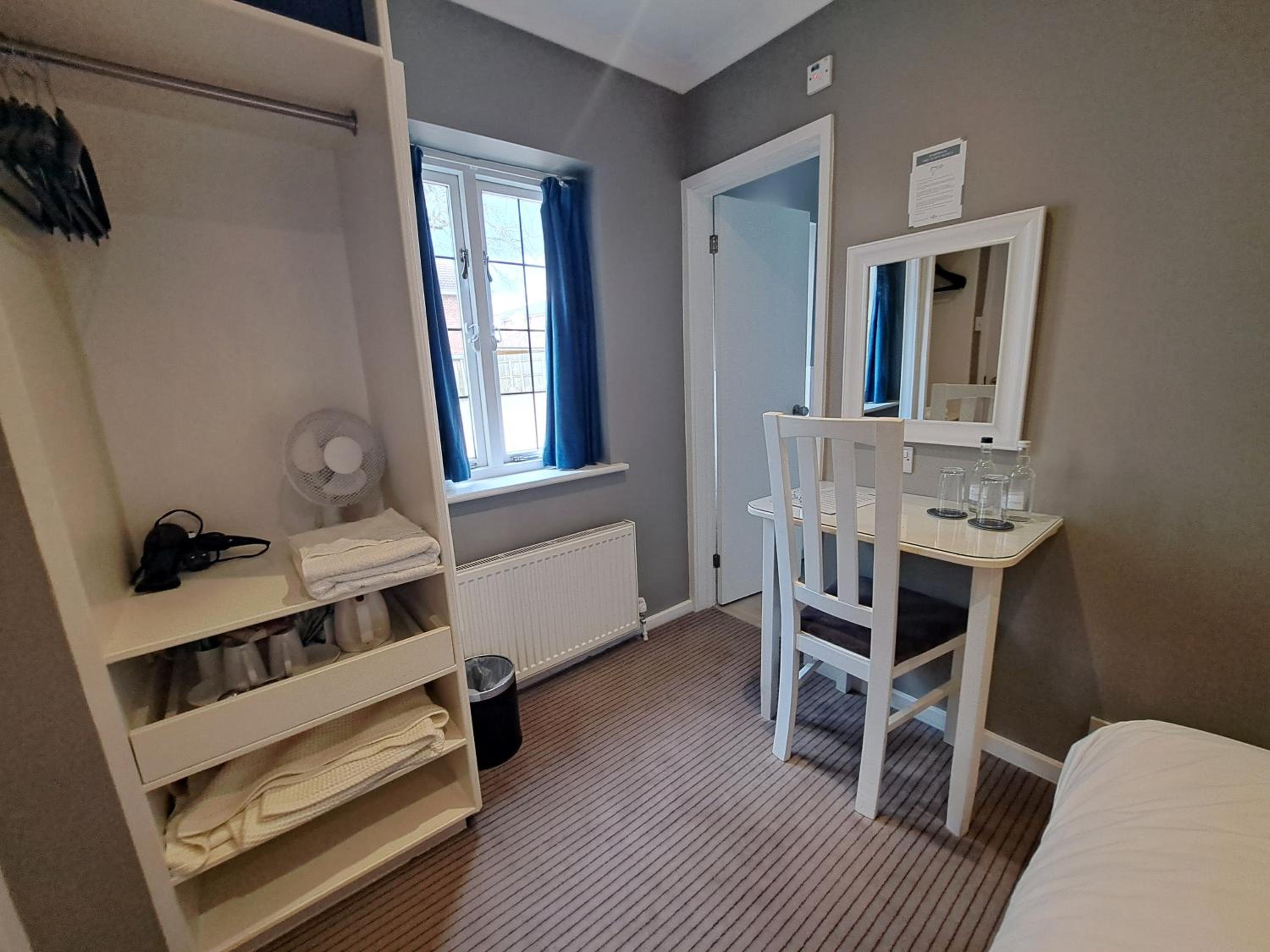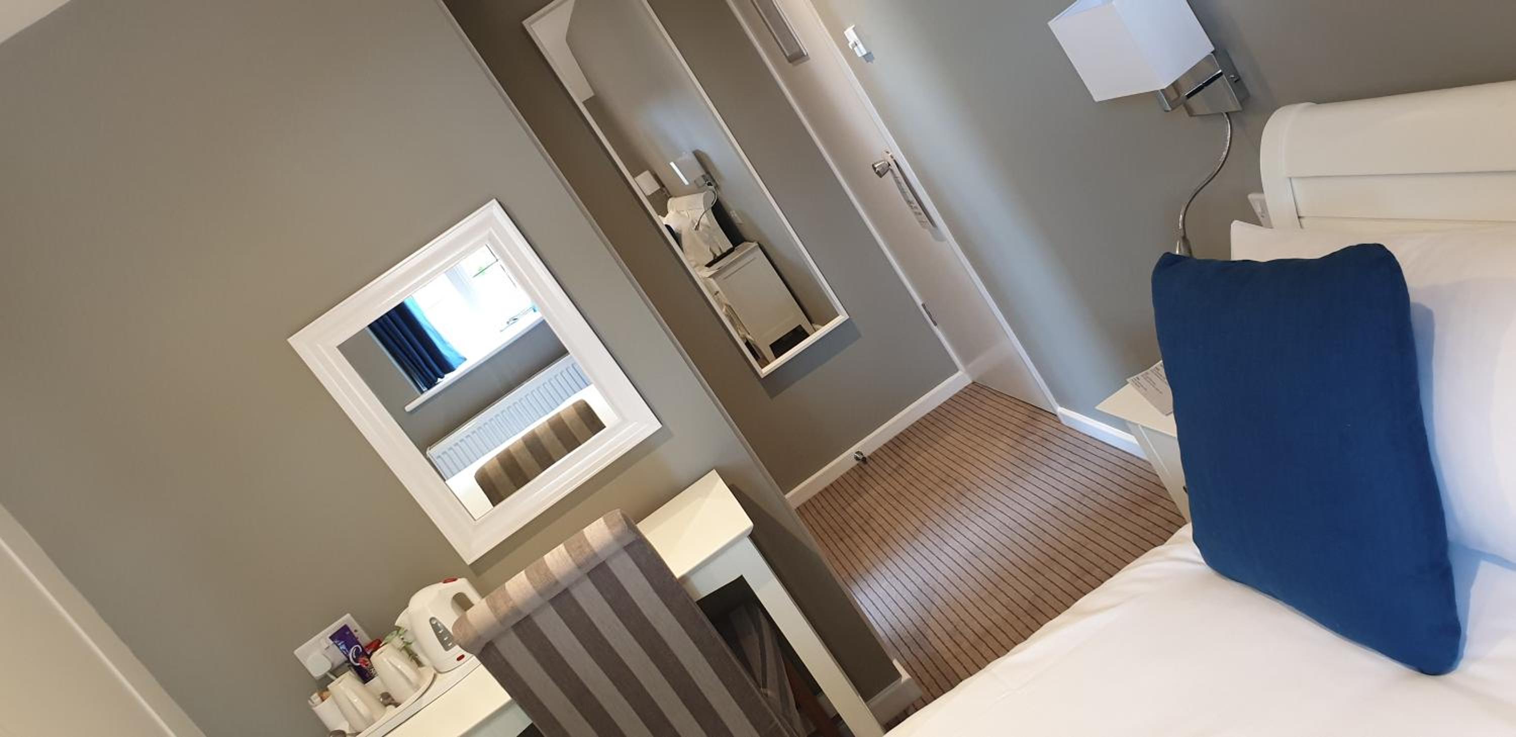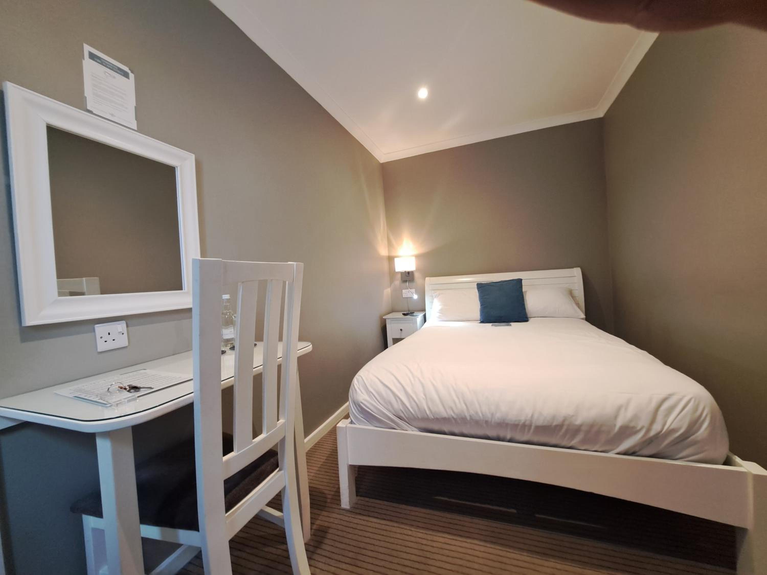 The only reason it lost one star from us is that the rooms are very small and the photos on the website misleading. The photo of a 'small double, shows sufficient room on each side of the bed for a table. We were booked to a, more expensive. 'standard double' and only a fairly thin person shuffling sideways could make it down one side of the bed. Only room for 1 chair. Fine for a single occupant or an overnight stay, but too cramped for a longer visit.