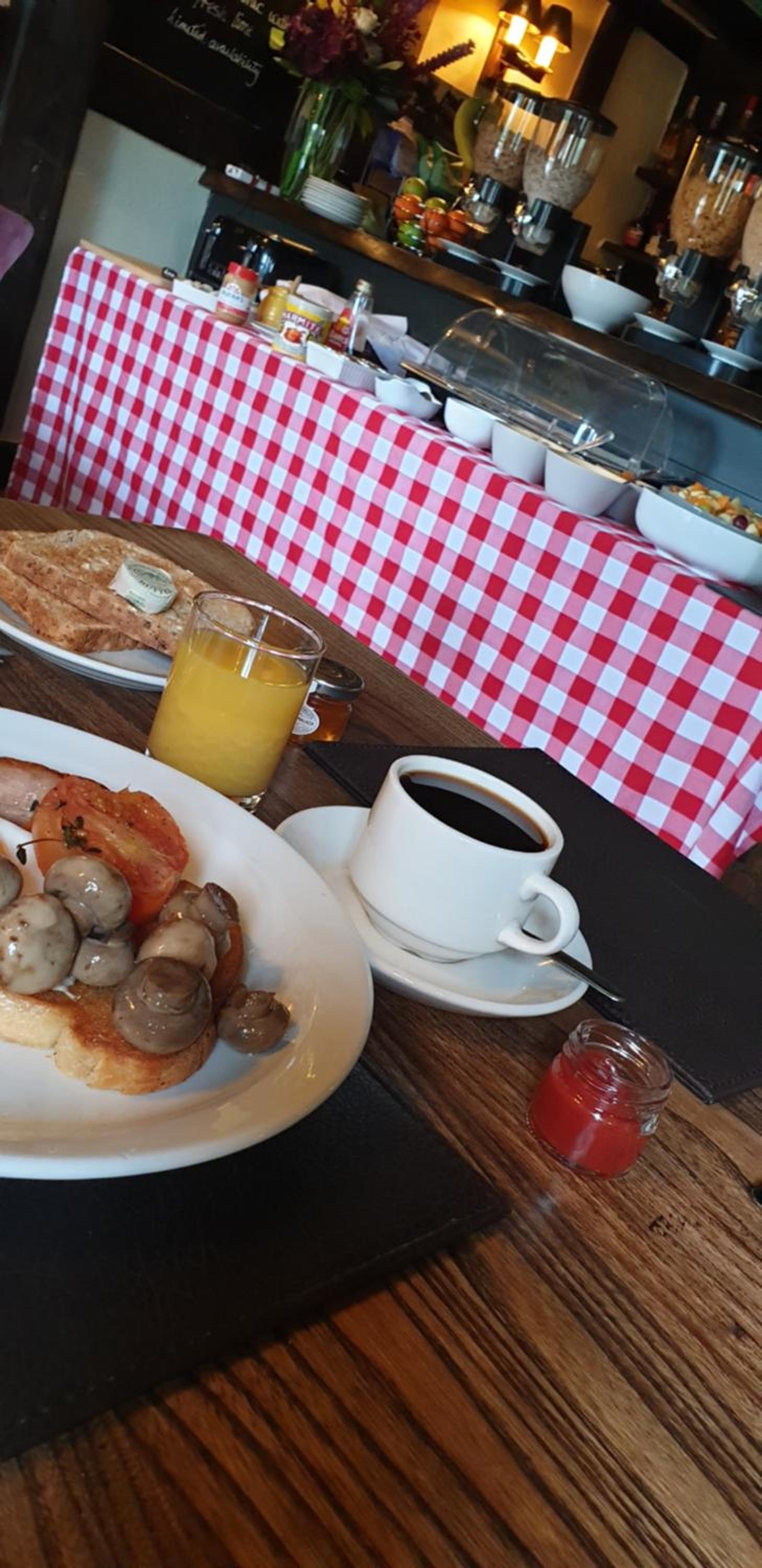 Warm welcome from friendly staff. Room clean and well appointed. Breakfast was amazing such a huge choice and freshly cooked not from a hot plate . Nice atmosphere in the bar for a cosy evening. Can’t recommend highly enough.