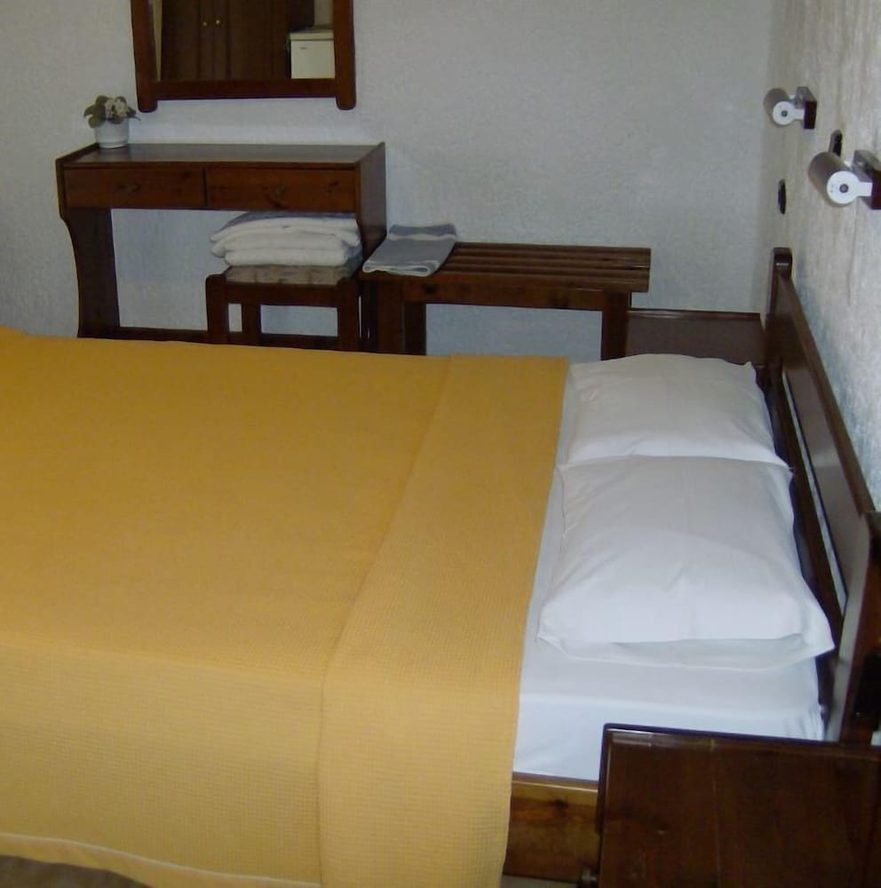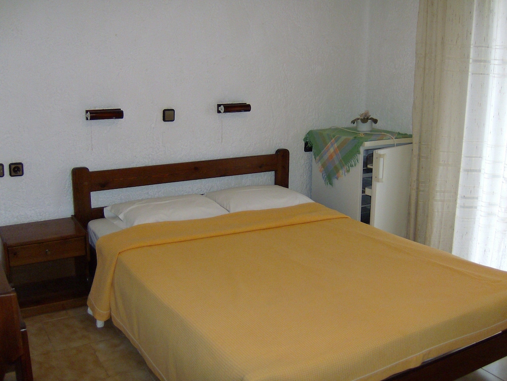 Old furniture ~1970 or so. Terrible checkout time, 8.30am max! Smelly towels (not properly dried). No wifi. 2 small soaps. Not very clean. 2/5. Greasy food, calamari smell like omelette! Greek salad without cheese! Avoid.