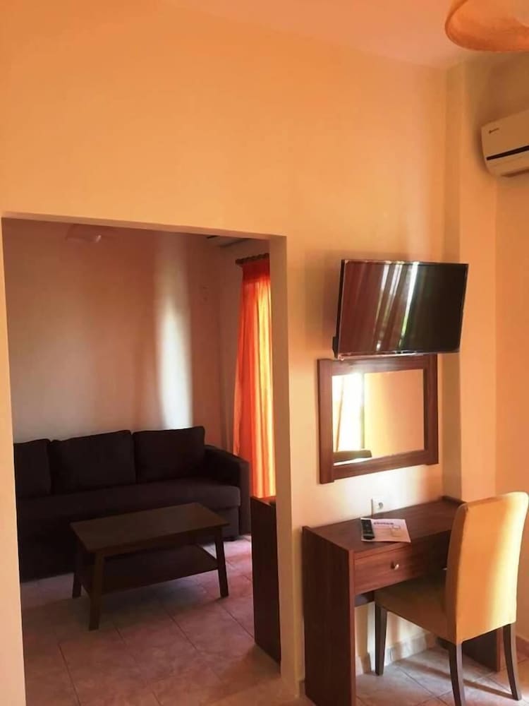 We had a pleasant surprise with this hotel. It is at a good location by the sea in one of the best places in the area between Katerini and Platamonas. Quiet, in contrast to nearby Katerini and other resorts. A perfect budget hotel. The staff is very friendly and helpful, they speak English fluently, and the proprietor also speaks German. There is a large parking space for your vehicle even in the height of the season. Suitable for both a stopover or a longer holiday. The beach is right in front, sandy with small pebbles, shallow enough even for small children. It is good to have a car here - not only to reach the place but also for exploring the nearby Olympus mountain and the many beach areas around.
