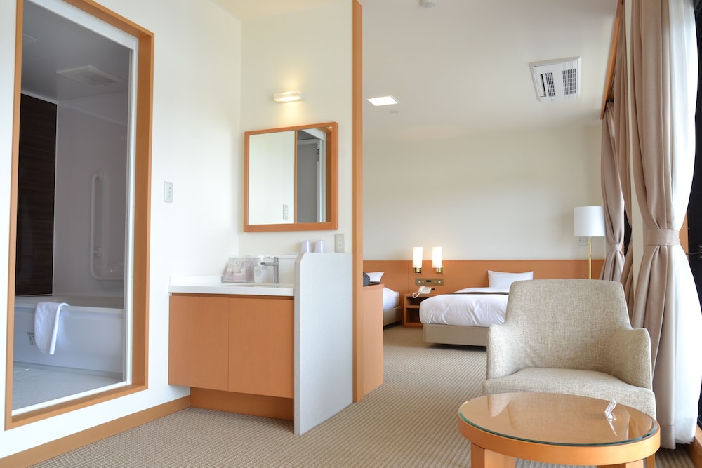 Our room was a western twins bedroom, which was comfortable. This hotel overlooks Anamizu bay from a hill.