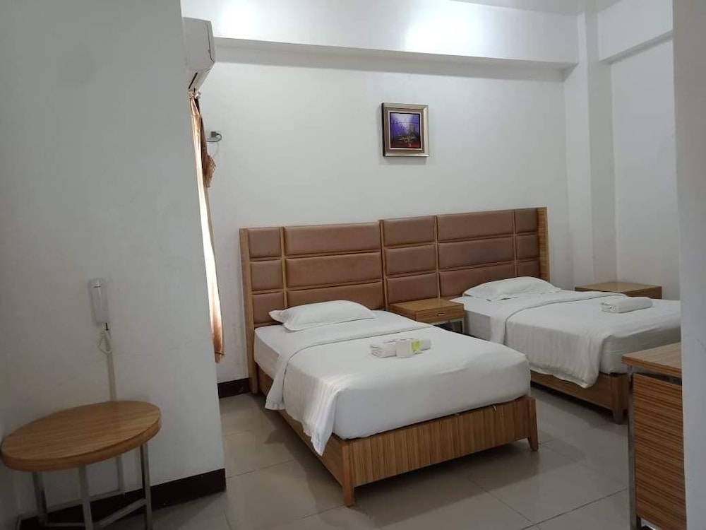 Location of the hotel is excellent. It is centrally located so food and transportation are easily accessible for hotel guests. However, the room that I stayed-in needs upgrading. Chipped-off wall and ceiling paints, bathroom doesn't have a shower curtain so it makes the entire restroom wet. The bathroom tiles are old and dirty-looking because of the missing grout on some parts of the walled tiles. Good thing they have a comfortable bed so I was able to sleep despite the hotel's noisy air-conditioning system.