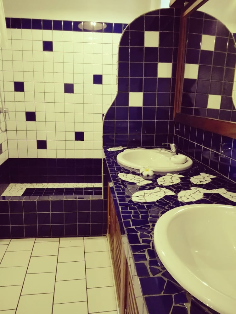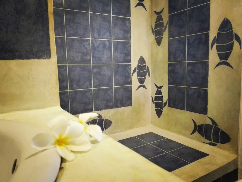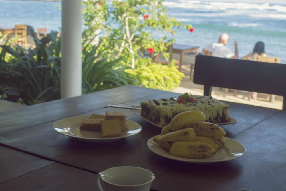 The location was perfect - right in front of the sea. It was simply, but thoughtfully furnished and equipped with everything we needed - efficient air con and ceiling fan, water on arrival, mosquito net (we didn't get bitten) and there was always someone around to answer any queries. Incense appeared at dusk to deter mosquitoes. The breakfast was lovely, and served in front of the sea - freshly prepared fruits, then pancakes, or omelette with toast and jam, coffee and tea. A selection of good restaurants and bars were within a short walk up the beach.