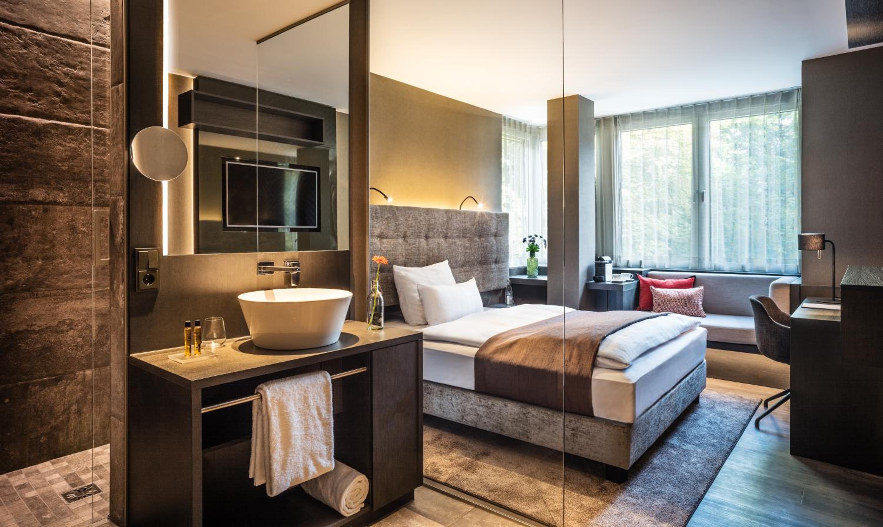 SAKS Urban Design Hotel Frankfurt offers stylish rooms equipped with modern amenities such as air conditioning, flat-screen TVs, and coffee machines. The private bathrooms feature showers and complimentary toiletries, ensuring a comfortable stay for every guest.