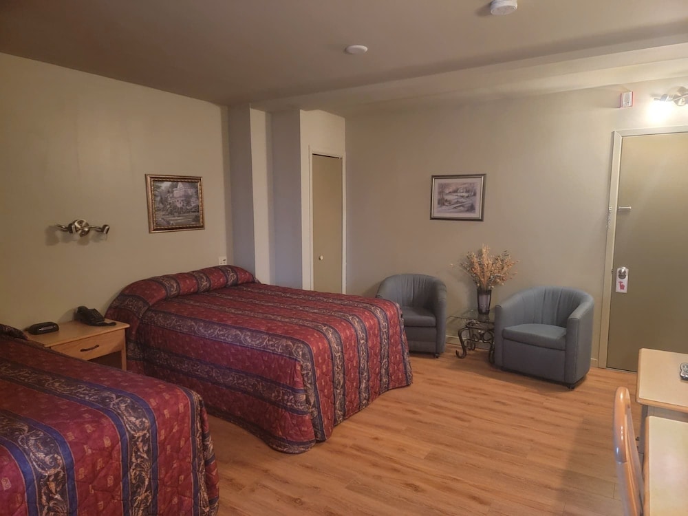 The hotel was clean and comfortable. Stayed 2 nights, our room on the lower level was large, clean and the bed was comfortable. Our view was of the back parking lot so not great but it was a quick walk to a really good restaurant, Chez Julie. Staff are exceptional, we don't speak French but they made fantastic efforts to explain things in English.