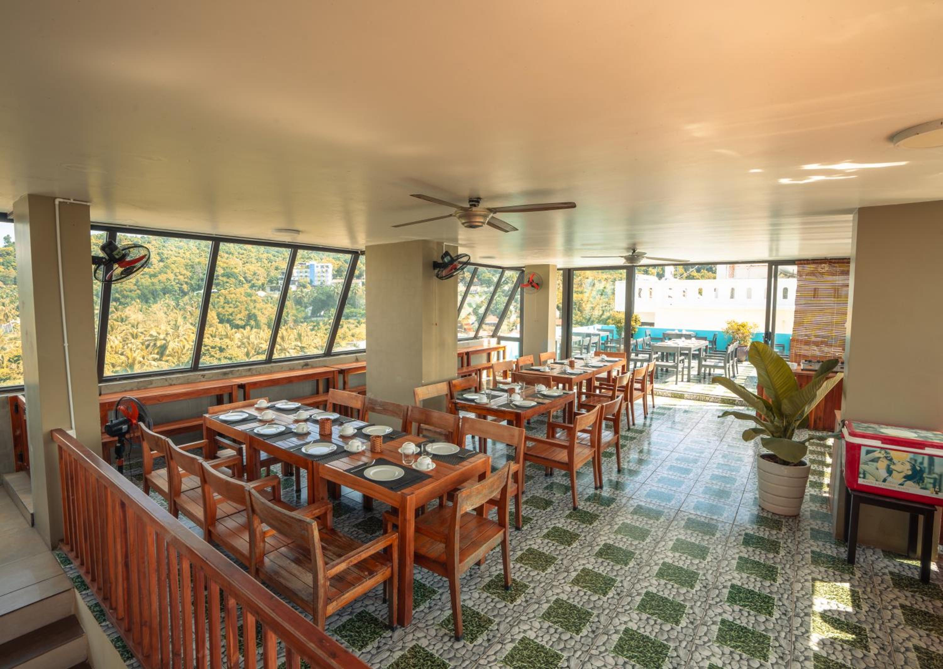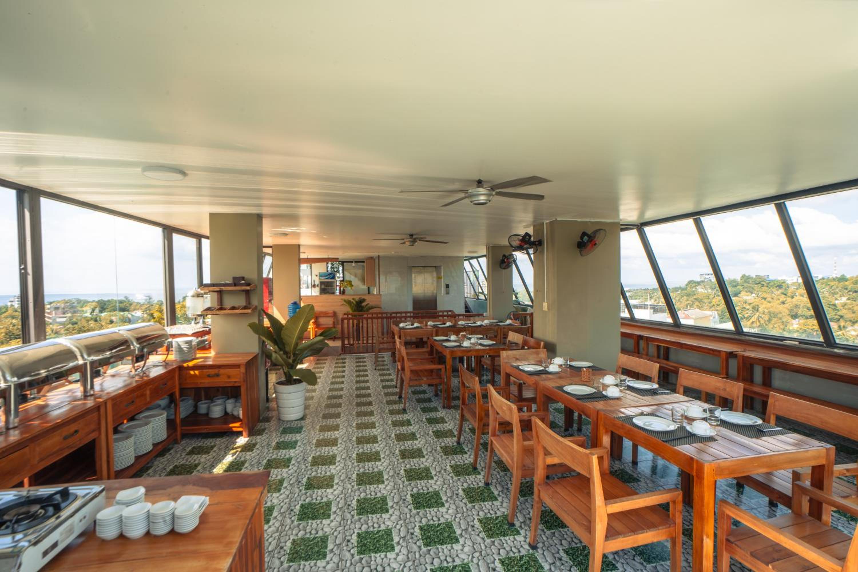 The days we stayed (which is peak season for phu quoc) they were hanging outside our windows to paint the building so we could never have our curtains open !!