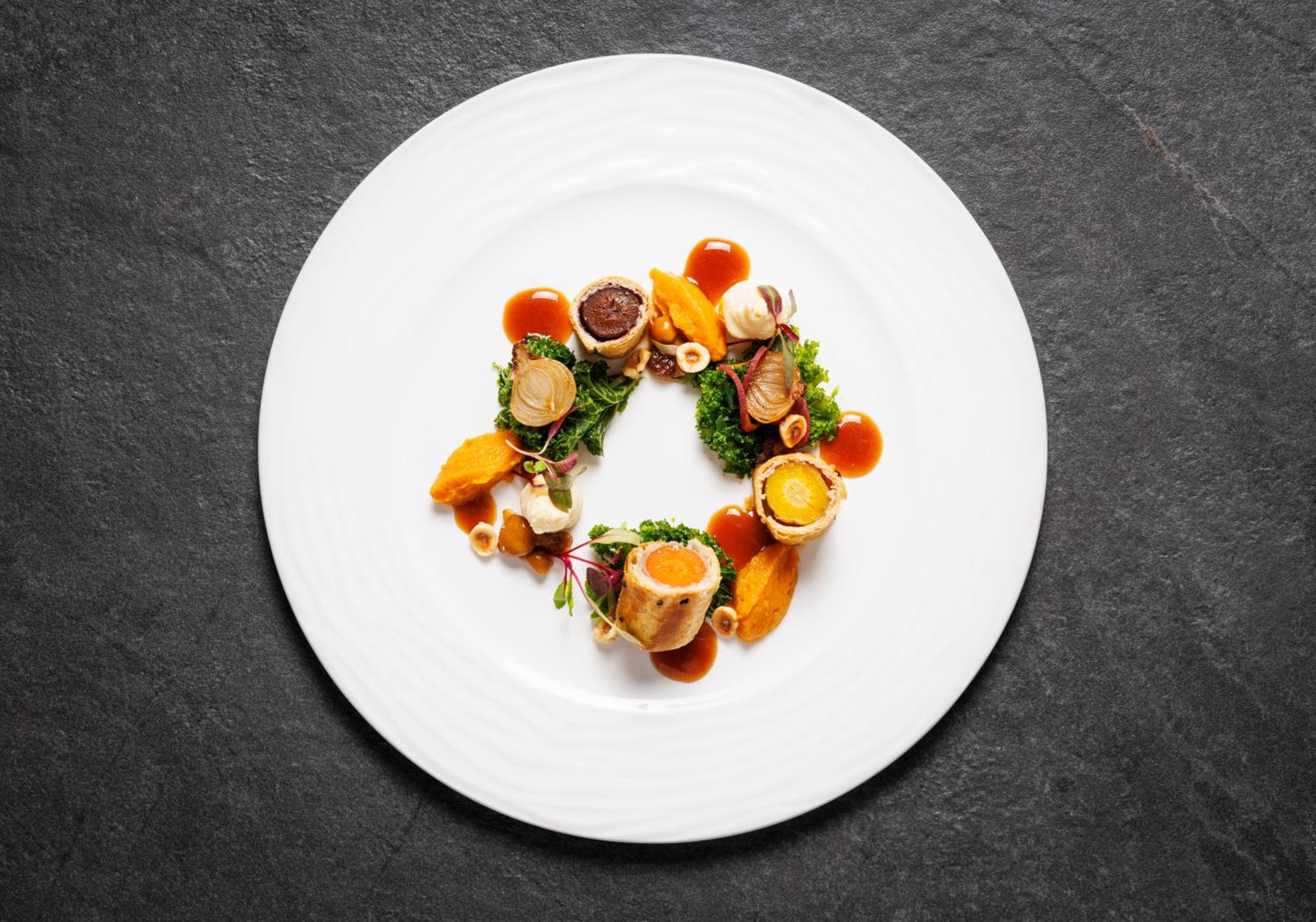 Indulge in a seasonal menu crafted from local produce at our restaurant, while enjoying the warmth of a log fire in our cosy bar.