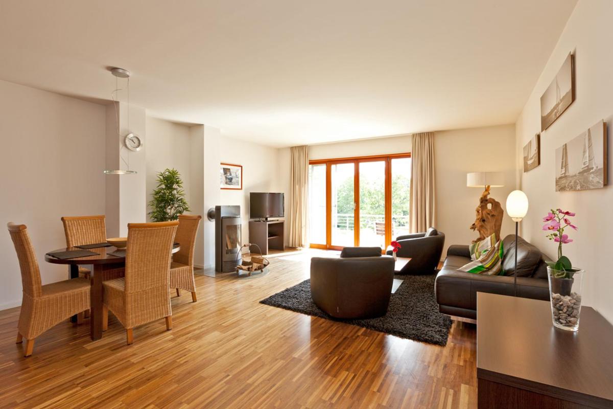 The Seeresidenz Klink apartments boast a high standard of modern furnishings and stunning views of Lake Müritz from private balconies or terraces. Enjoy the comfort of contemporary amenities in a picturesque lakeside setting.