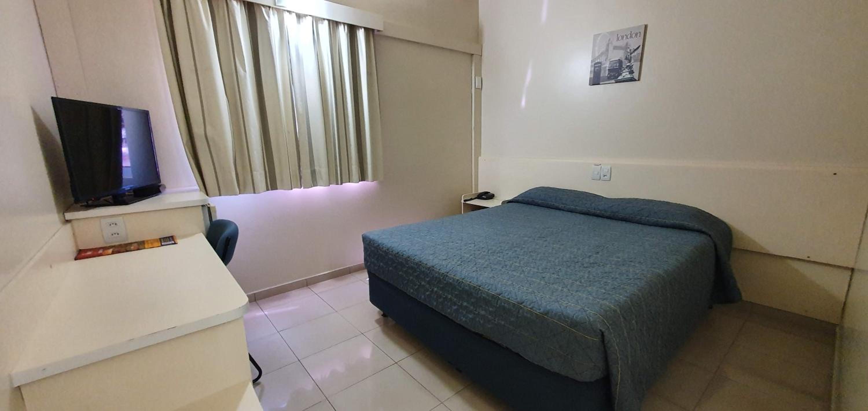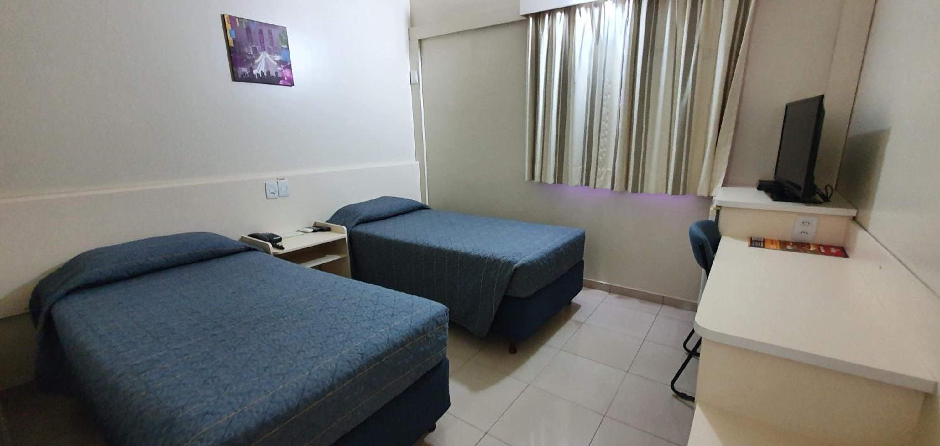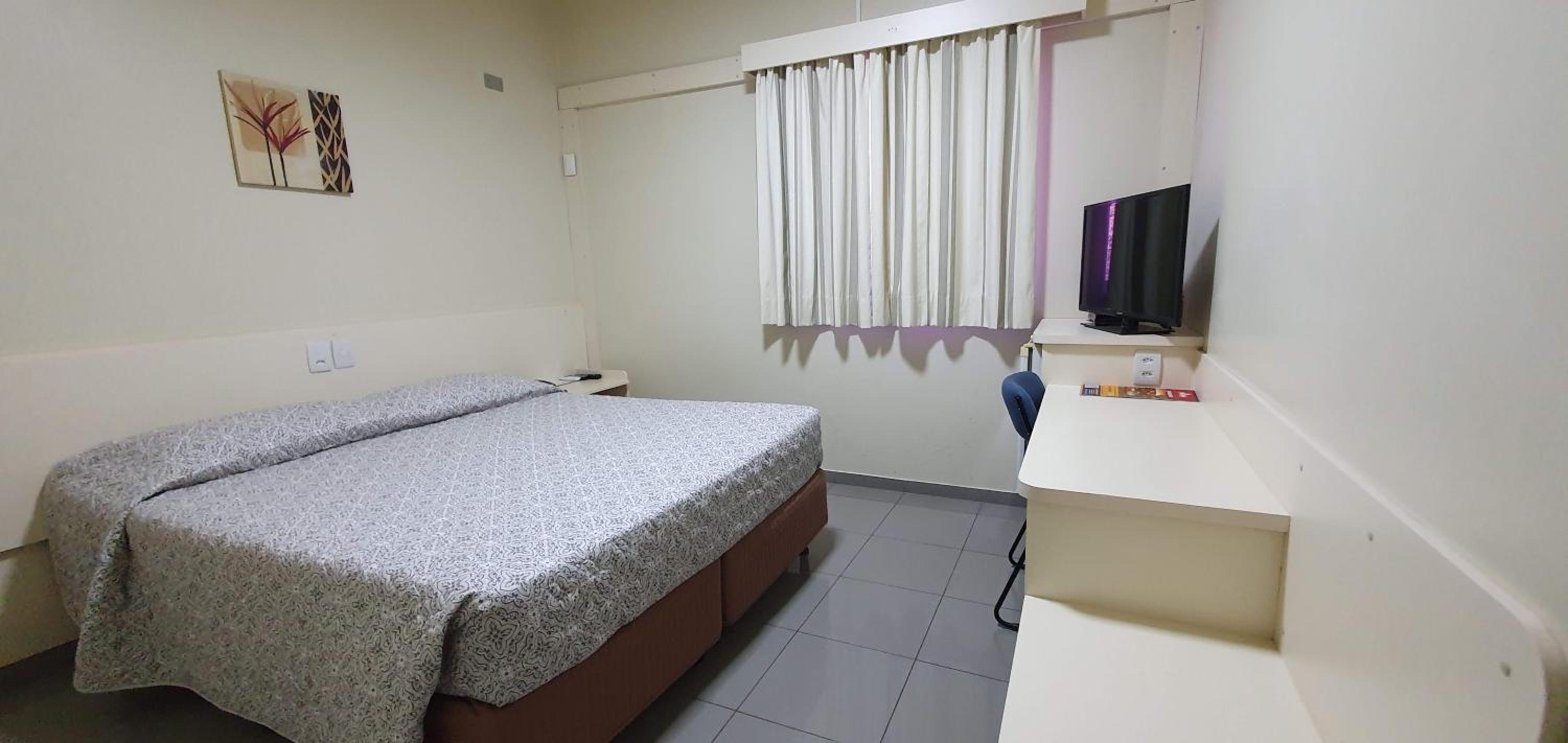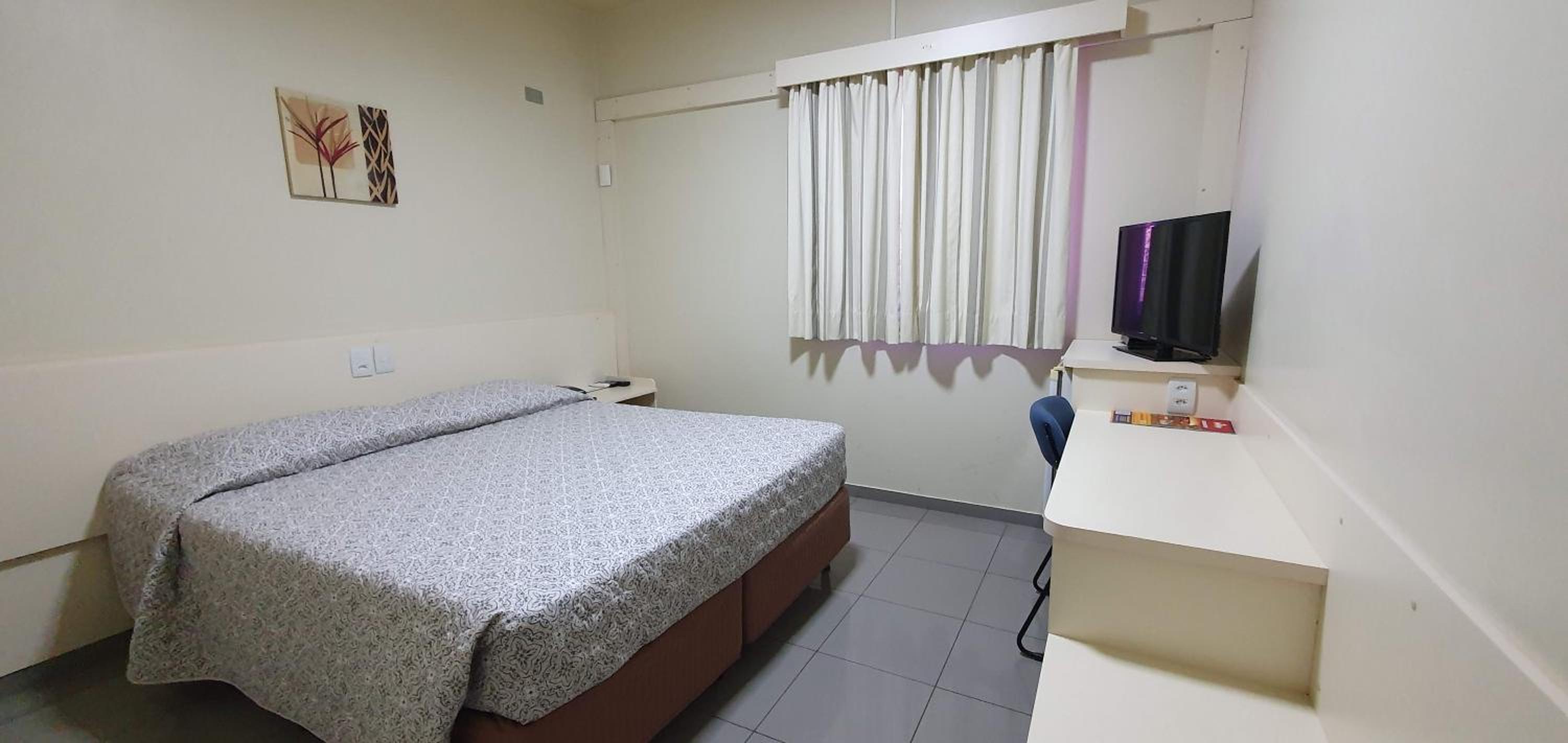 Trata-se de um hotel muito confortável, com boas instalações, quartos de tamanho adequado, boa cama e roupas de cama, banheiro bom também. Equipe atenciosa e agradável, um bom café da manhã, com alguma variedade, mas apenas ok. TV de tela plana, mas não utilizei os canais para poder avaliar. . Localização atípica, ao lado de um Shopping Center, que, para nós foi muito bom, mas pode não agradar a todos. Tem até uma entrada exclusiva para os hóspedes! Tem a indispensável ducha higiênica no banheiro e secador de cabelos. Estacionamento gratuito, farto e de fácil acesso. WiFi funcional. Ar condicionado também bastante eficiente. Local para abrir as malas, mas sem cabides ou guarda-roupas.