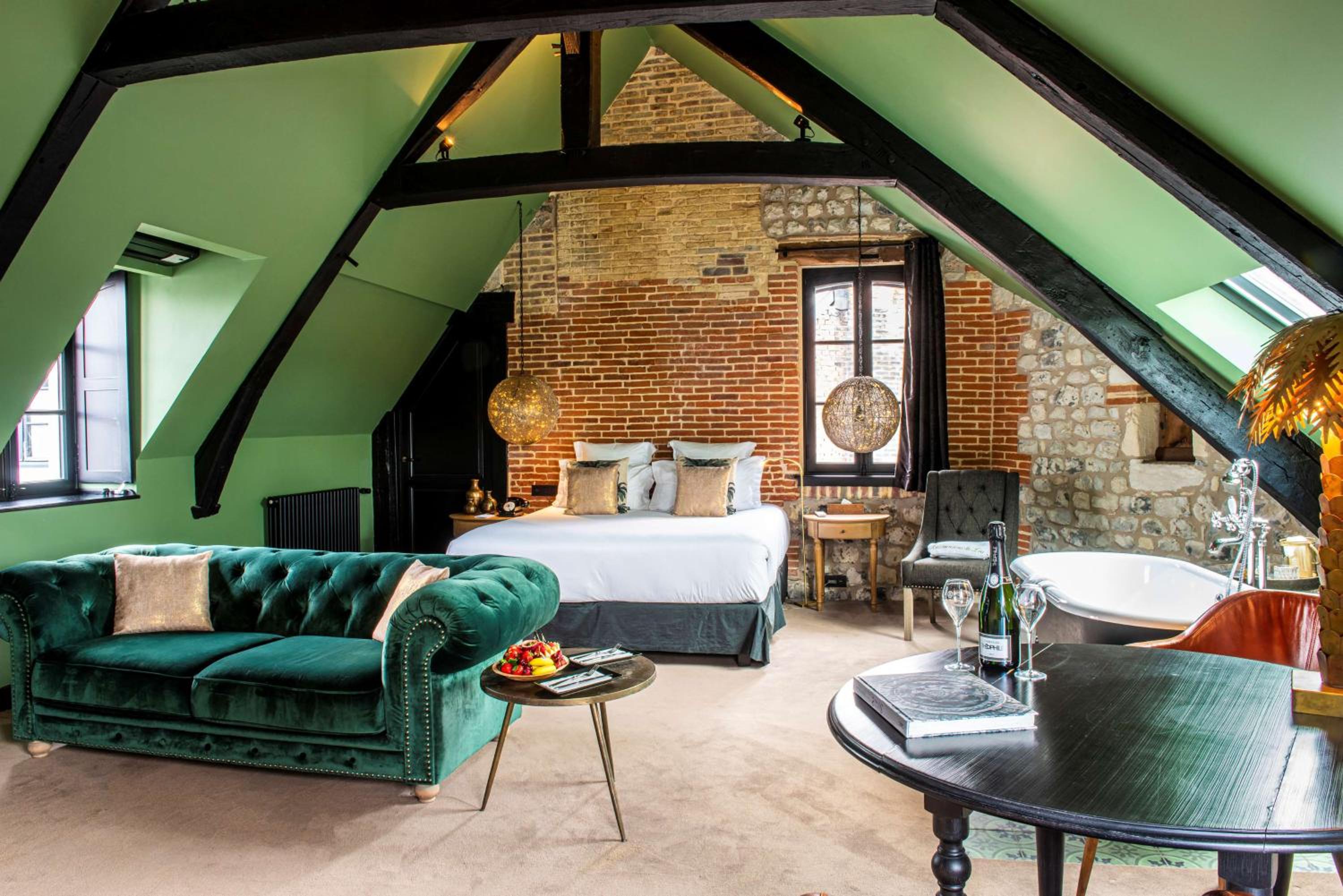 Experience the charm of Honfleur at Les Maisons De Léa, an elegant retreat nestled in a historic salt warehouse with stunning views of Sainte Catherine Church.