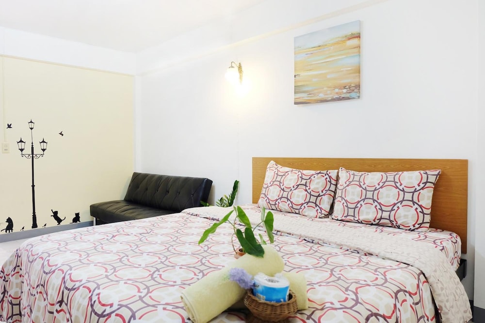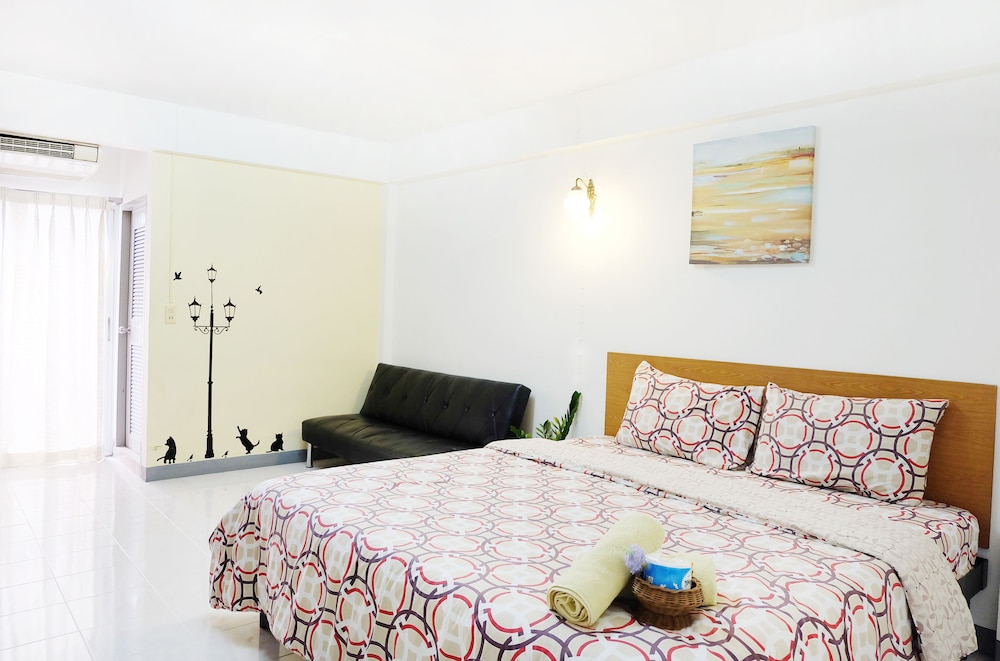 I travelled on business. Simple accommodation at a very convenient point, close to MRT with shops, night market, restaurants, laundries nearby. Perfect if you have a lot of things to arrange in Bangkok and need a base. Staff is kind and helpful, the whole place is quiet. The room is quite well equipped, i only missed the water heater.