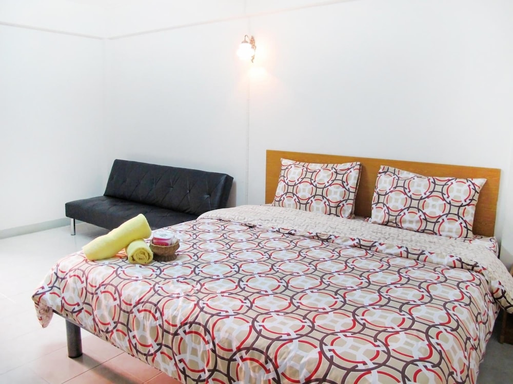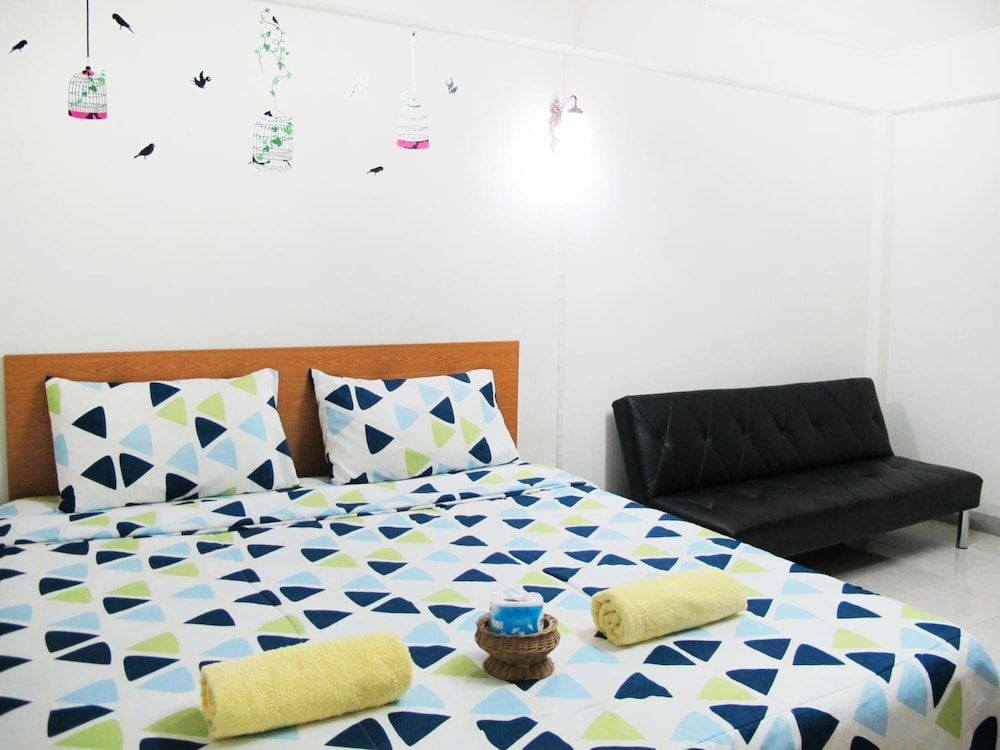 Very practical location, close to MRT. If you have to arrange a lot of things in Bangkok and you need public transport, this is a perfect base. Smaller shops, restaurants, a good night market in a couple of minutes walking distance. The room is basic, it has everything you really need, including a proper wardrobe and a huge fridge. I only missed a water heater to make tea or coffee. Clean linen, comfortable mattress.