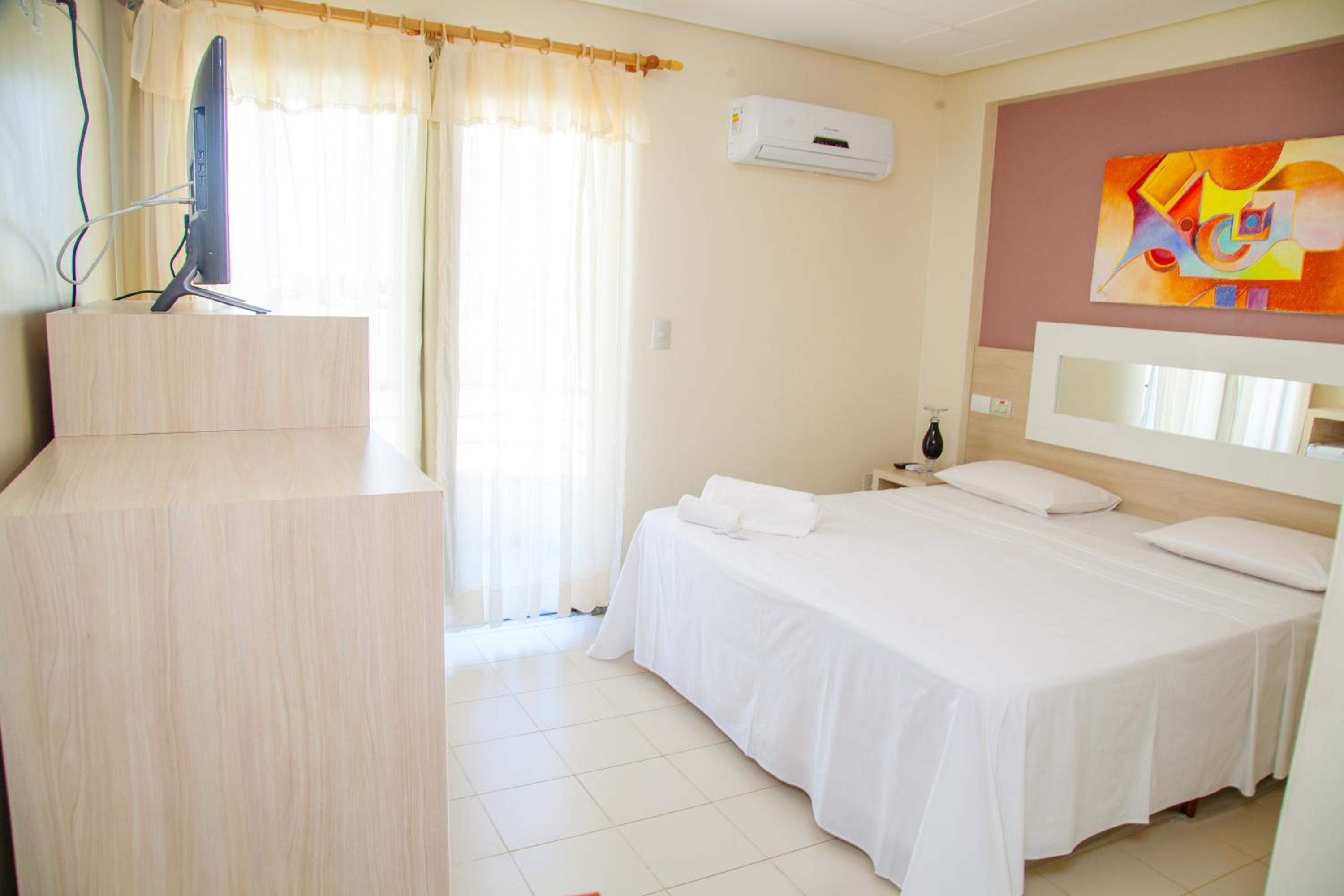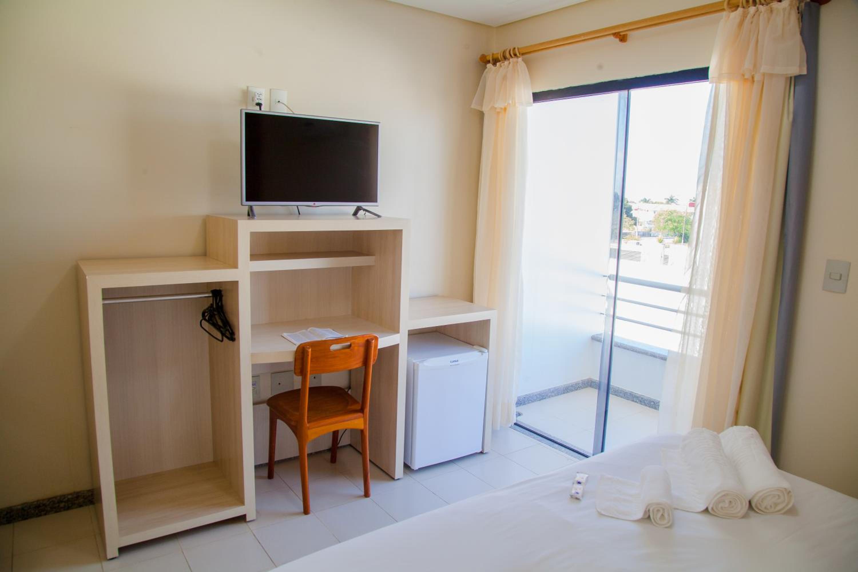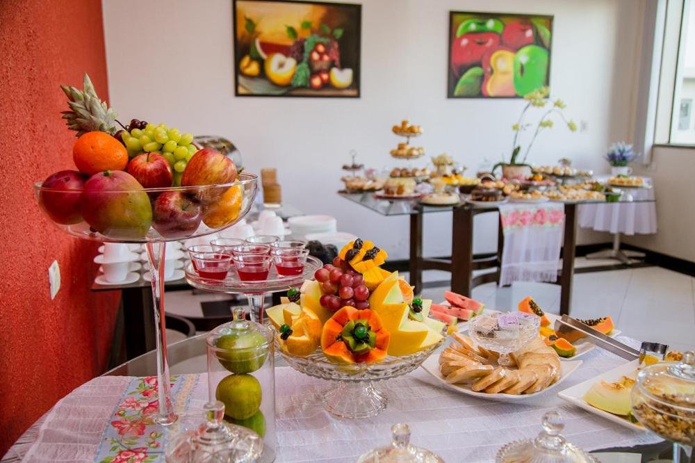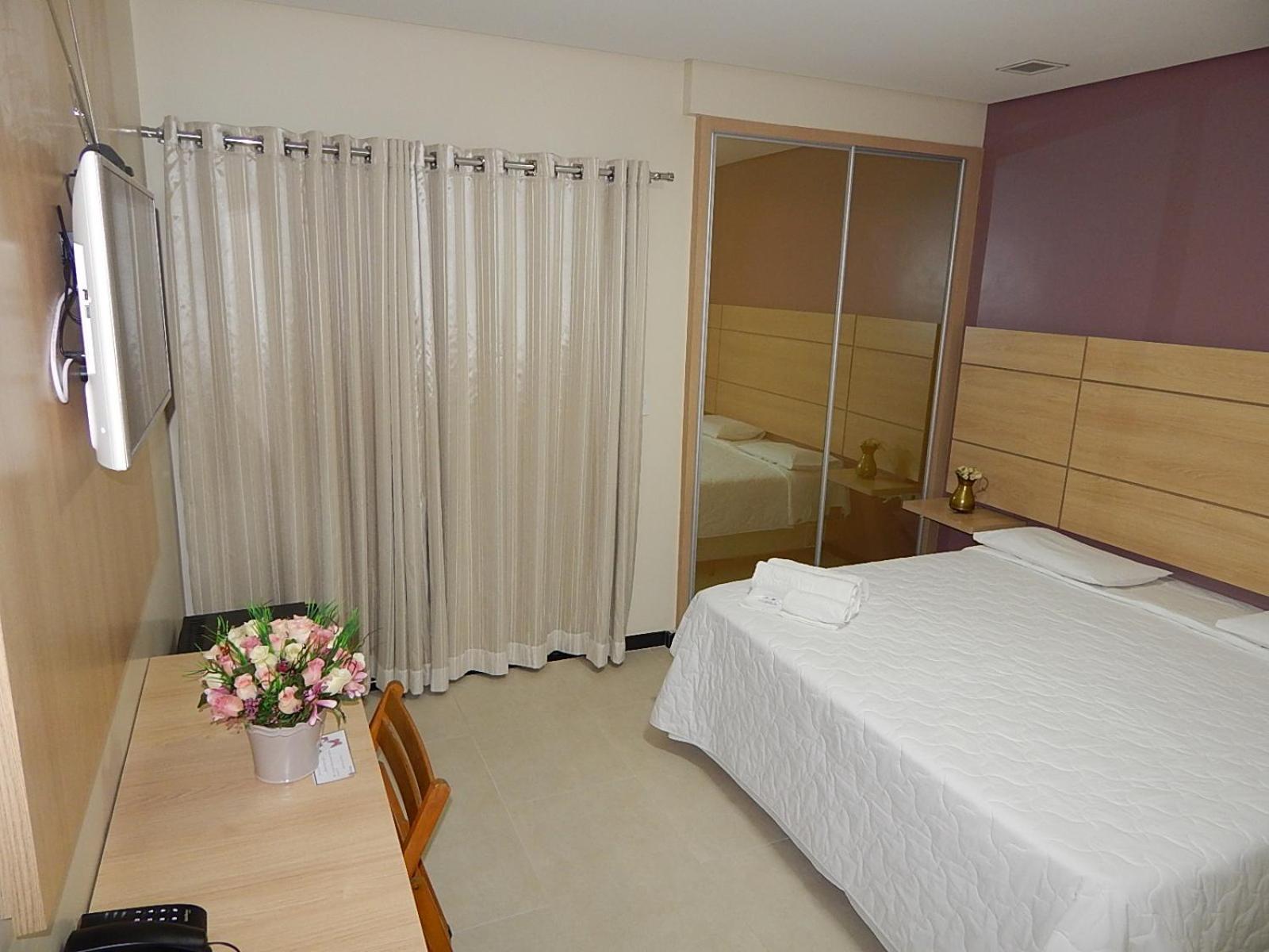 O hotel conta com piscina, uma área gourmet e sauna. O quarto era amplo, com varanda e a cama muito confortável. Estava tudo bem limpo e cheiroso. O café da manhã é excelente, tinha muitas opções!