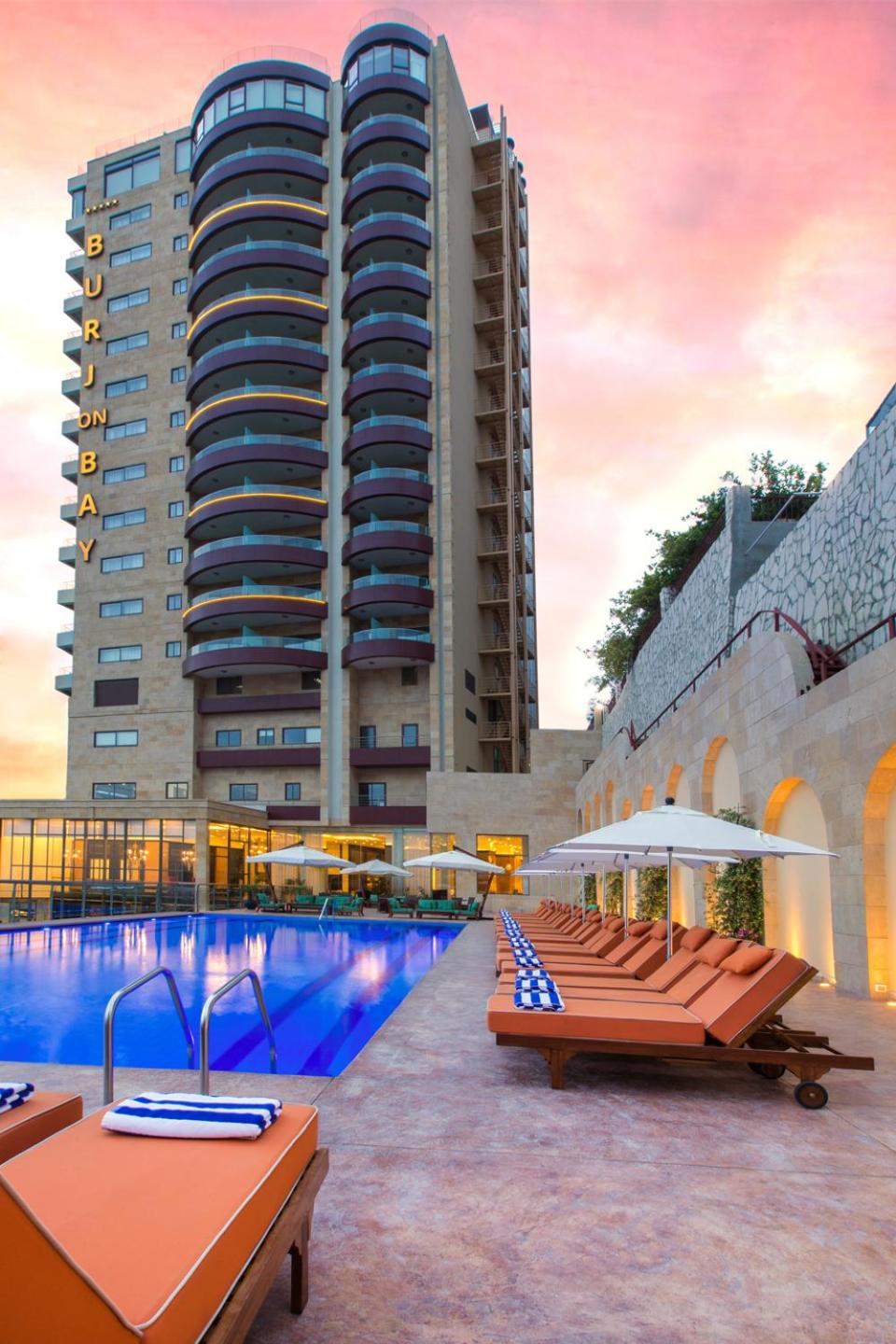 Located in Jounieh, just 2.1 km from Tamary Beach, BURJ ON BAY Hotel is a 5-star retreat with a seasonal outdoor pool, fitness center, and serene garden. The hotel boasts a shared lounge, free WiFi, and top-notch room service. Each air-conditioned room is elegantly furnished with modern amenities like a flat-screen TV, minibar, and private balcony.