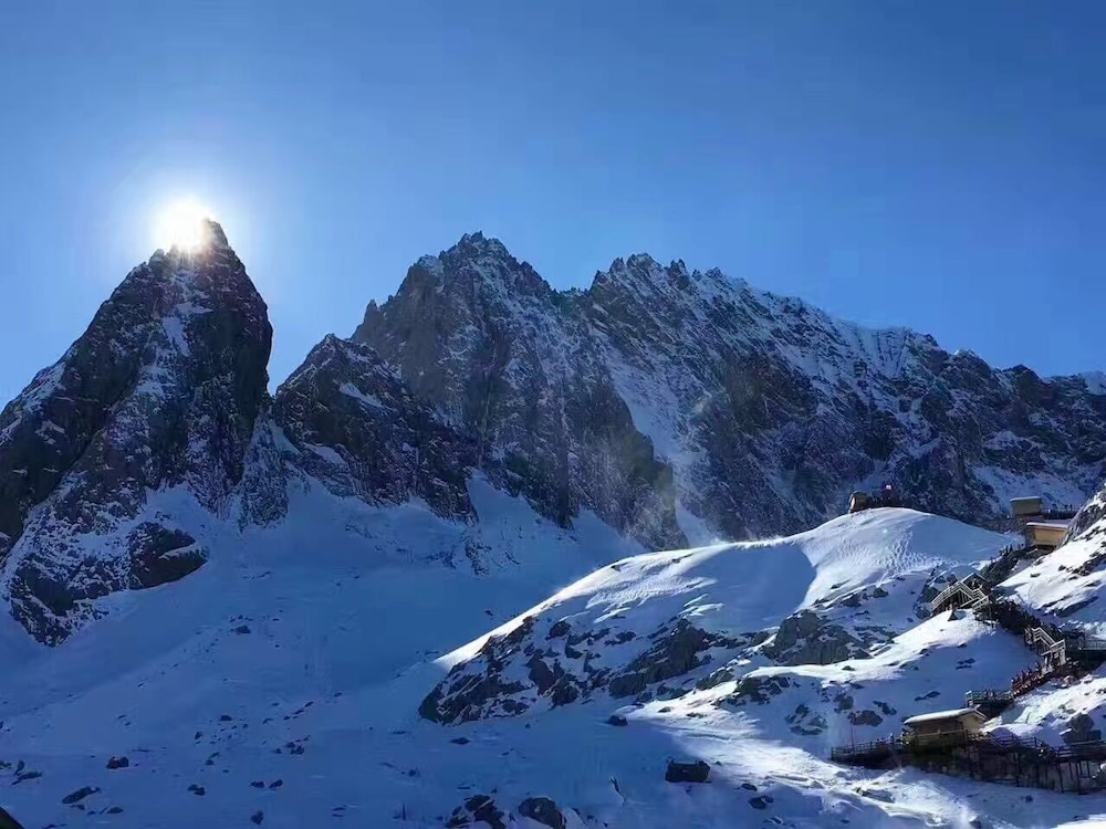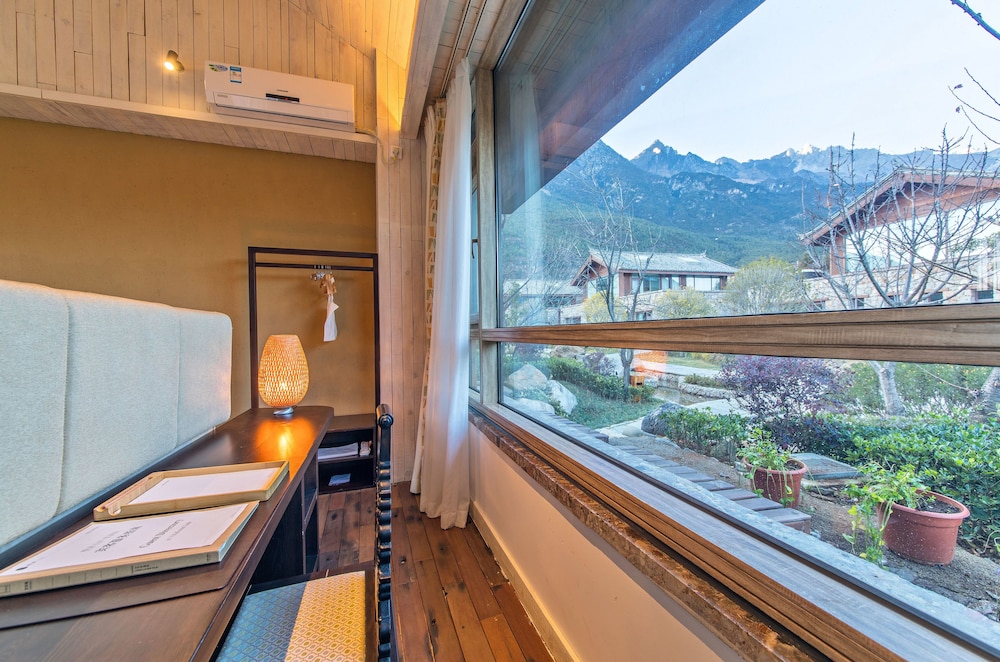 酒店位置安静,在玉湖村边。离白沙古镇15分钟车程。入住一天送单程接或送,入住两晚可以有免费的接送,机场或古城都可以。有茶室和吸氧的地方。酒店工作人员服务都很好,请前台姑娘带看了一下其他房型,茶室的香香小姑娘很可爱。早晚温差比较大,晚上风不小,要注意保暖。