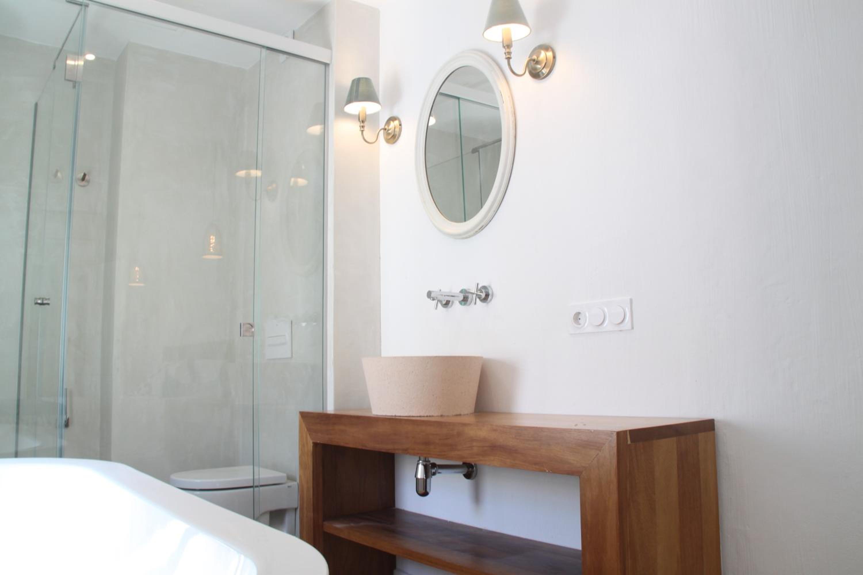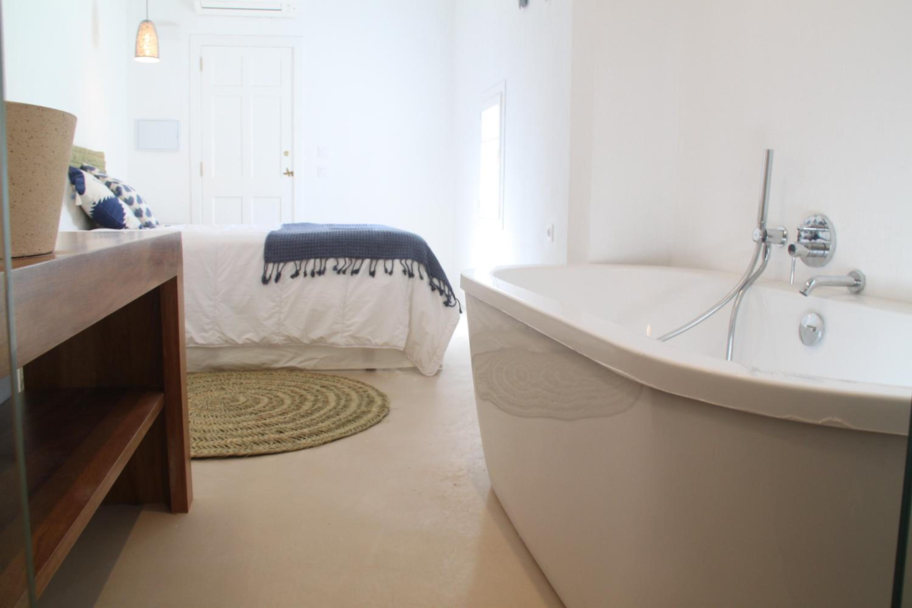 La ubicación increíble para pasar unos días en Menorca. La bañera es genial para relajarse después de unos días de tantas visitas y caminar. La habitación preciosa.