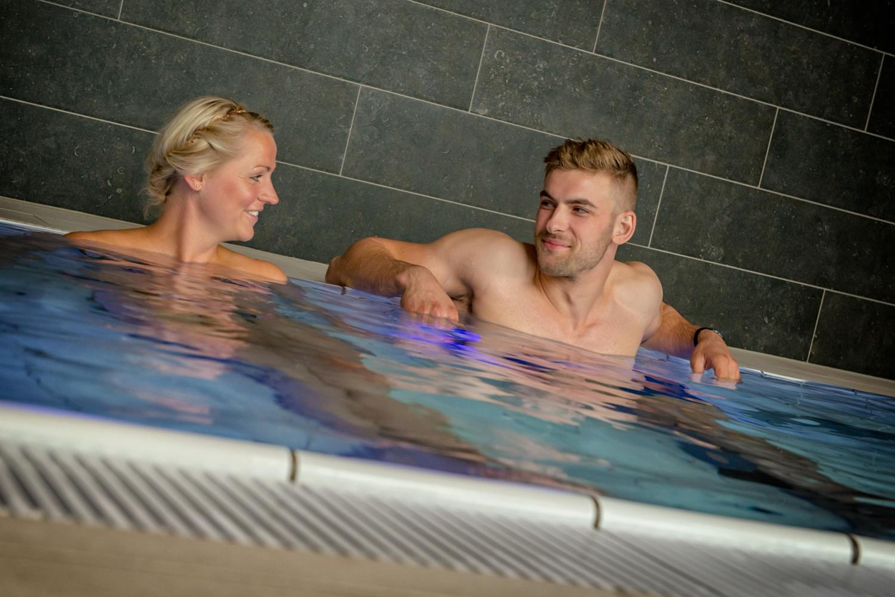 Das Schwimmbad wirkt schon eher etwas unschön, könnte eine Grundreinigung (inkl WCs) vertragen.sehr verkalkte Fliesen , WC Brille vergilbt,Liegen nicht sauber (vor allem aus der Perspektive aus dem Schwimmbecken (also von unten) gut sichtbar