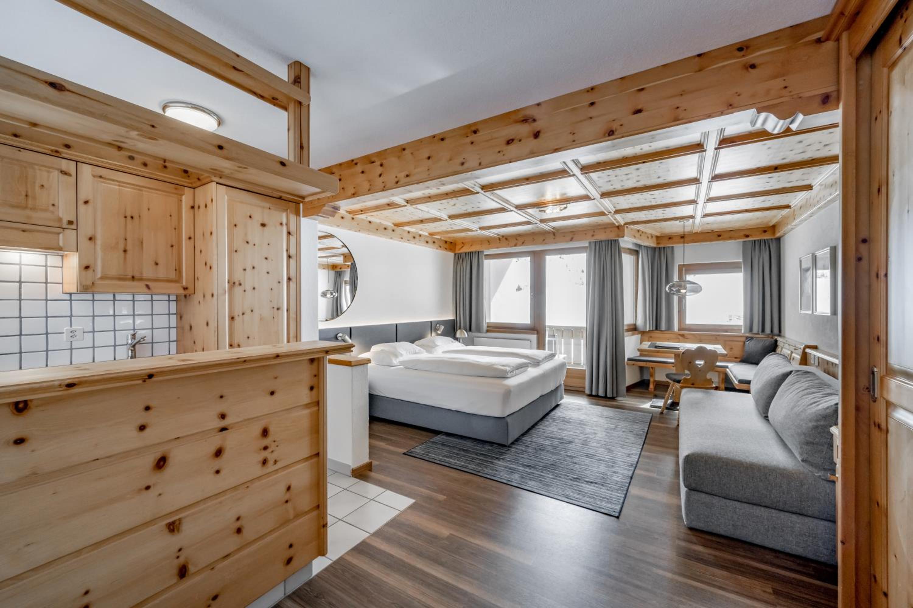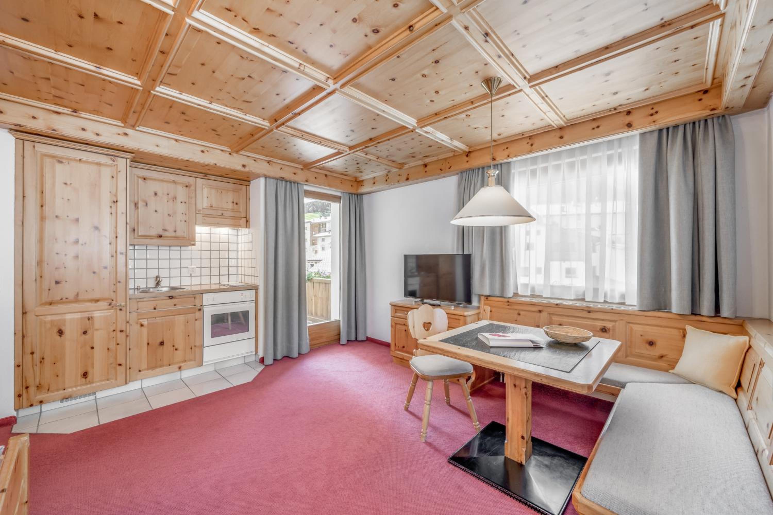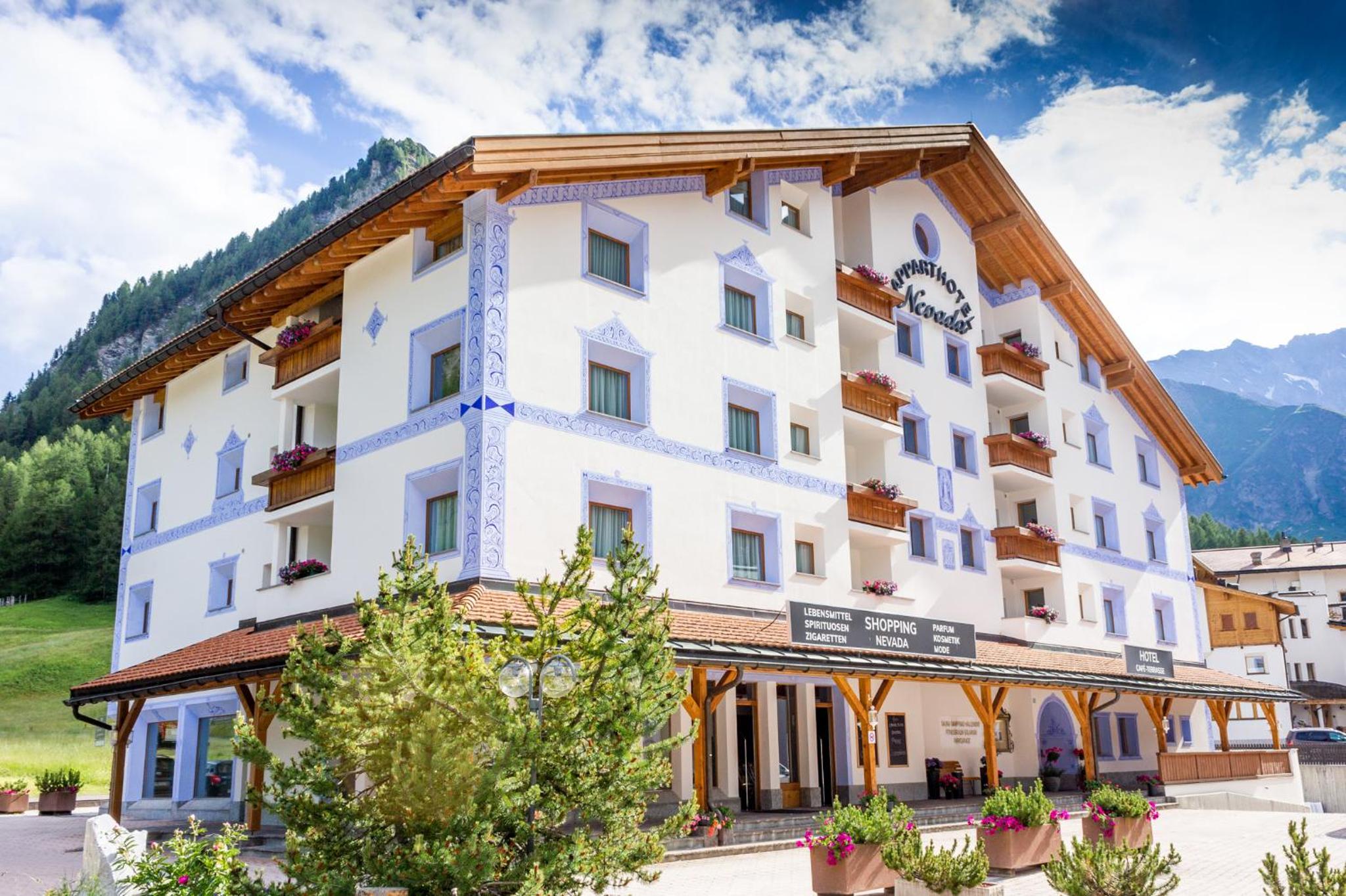 The AppartHotel Nevada in Samnaun, Switzerland offers beautifully furnished apartments with Swiss stone pine wood, fully equipped kitchenettes, and balconies to enjoy the breathtaking scenery. Free WiFi is available for all guests.