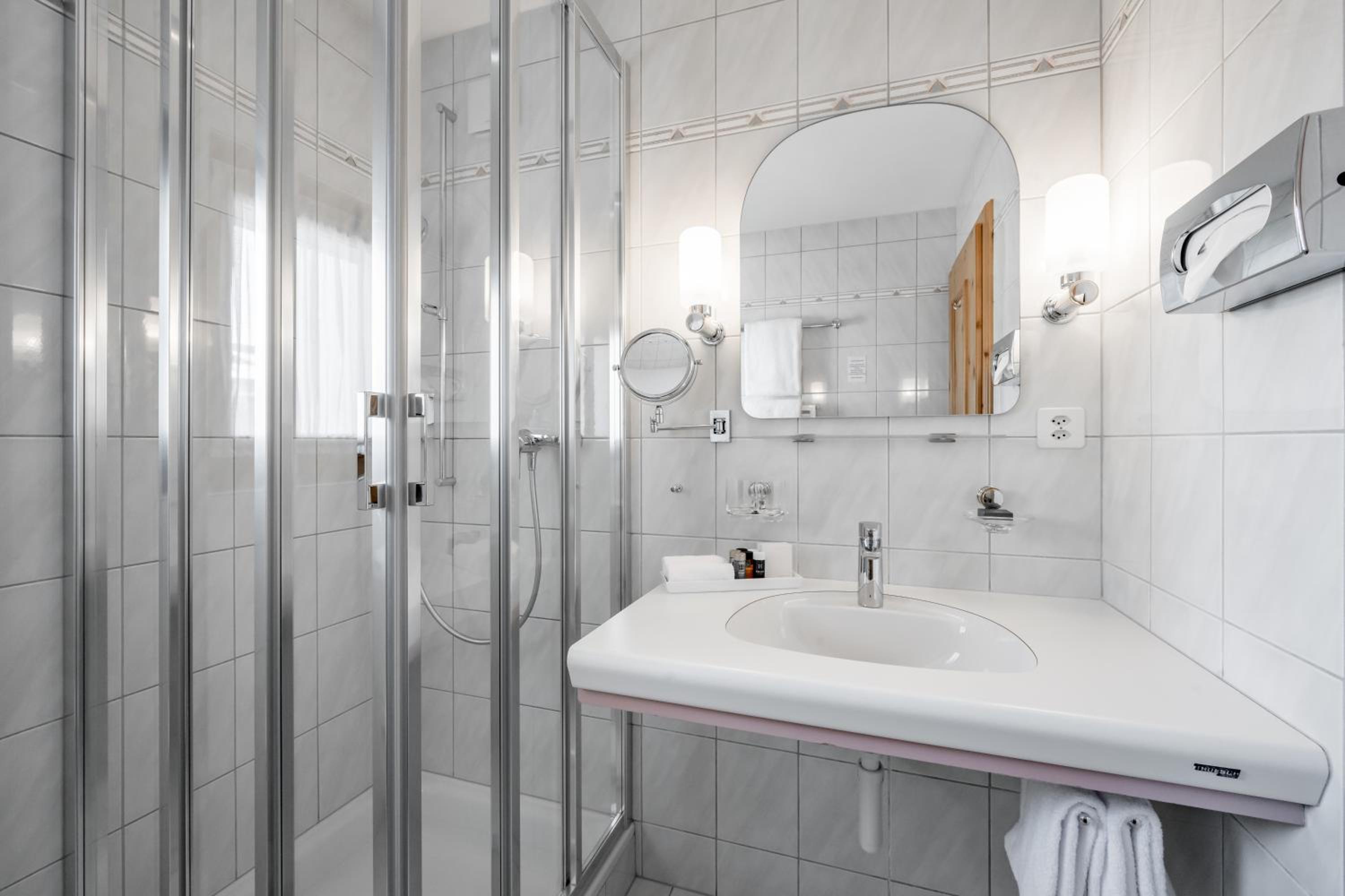 The showers (Room 205 & 206) are spacious, the facilities however very badly designed. The shower in the tube is extremly dangerous to use for older people. When calling on phone, the communication with the reception is difficult due to language problems.