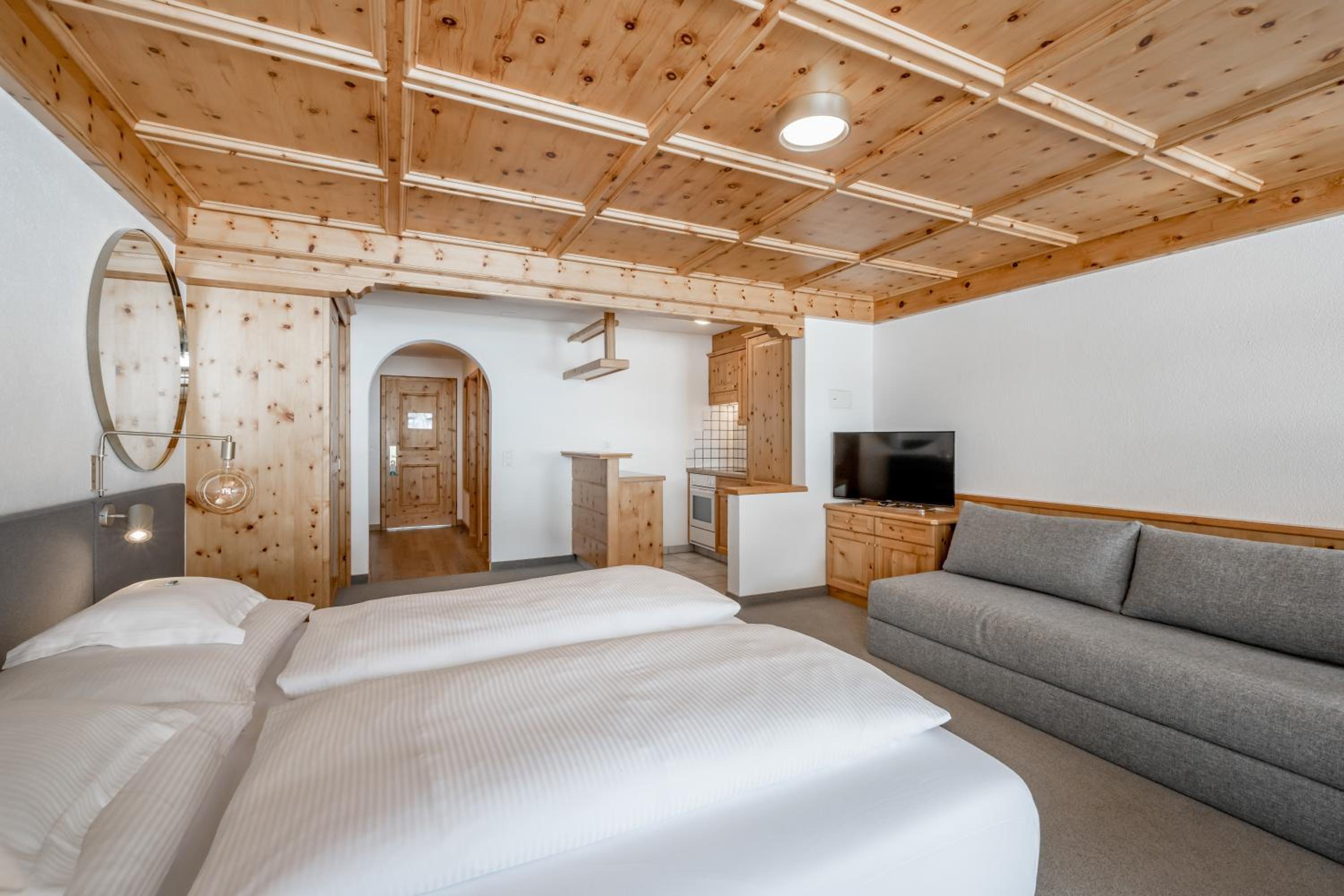 Wir hatten ein grosses ruhiges Zimmer mit Bergsicht, und ein abwechslungsreiches und frisches Frühstück. Das Personal war sehr freundlich und zuvorkommend. Das ganze Hotel war sauber und gepflegt und befindet sich mitten im Dorf. Ein guter Ausgangspunkt für Wanderungen. Der angrenzende Wellnessbereich im zugehörigen Nachbarhotel war sauber und gepflegt. Auch das Personal im Wellnessbereich war freundlich und zuvorkommend. Wir kommen gerne wieder.
