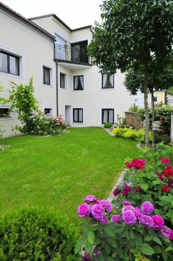 Located in a quiet neighborhood, 15 mins drive from Melk. Run by a family with good service- friendly, and the breakfast spread and dinner in the restaurant was good!