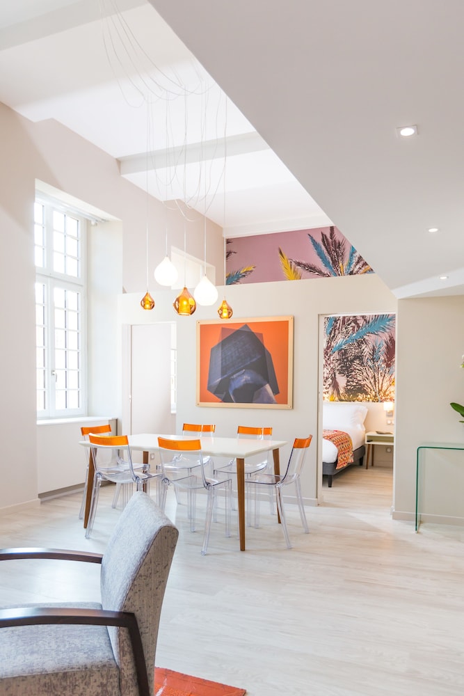 Family of four, all adults. The location, just off the Palais de Justice square, was excellent.Close to many great restaurants and bars. It was within walking distance to the tram and train in one direction, and a short walk to the beach and beach clubs in the other.