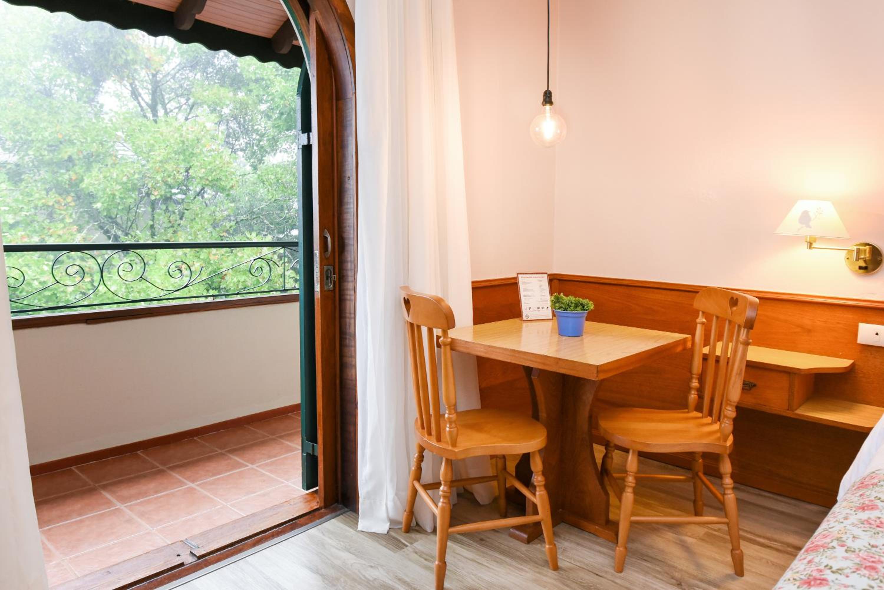 Café da manhã muito bom, bem diversificado. Oferecem pão e bolo sem glúten/lactose, de ótima qualidade. Frutas frescas, iogurte, geleias caseiras, embutidos diversos, queijos, vários tipos de pães, bolos, etc. A decoração aconchegante, reporta ao sul da Alemanha e Áustria! Cama muito confortável, varanda com linda vista. Você é recebido com um cafezinho cortesia, bem como chocolatinhos personalizados no quarto! Um mimo! O hotel tem um bar para drinks e serviço de bebidas na piscina. Conta com estacionamento gratuito. Pode ir a pé para a Av. Borges de Medeiros, a principal de Gramado.
