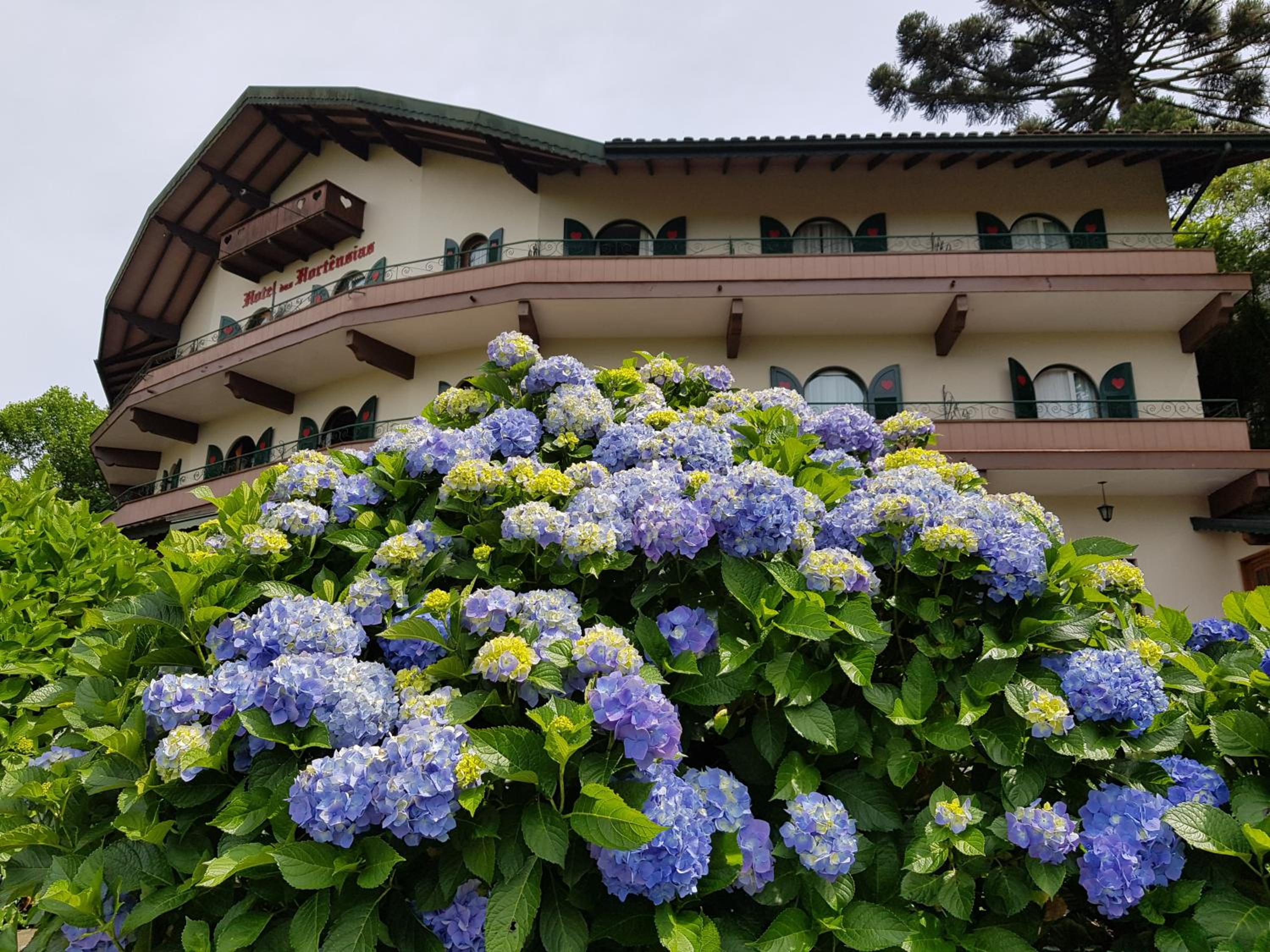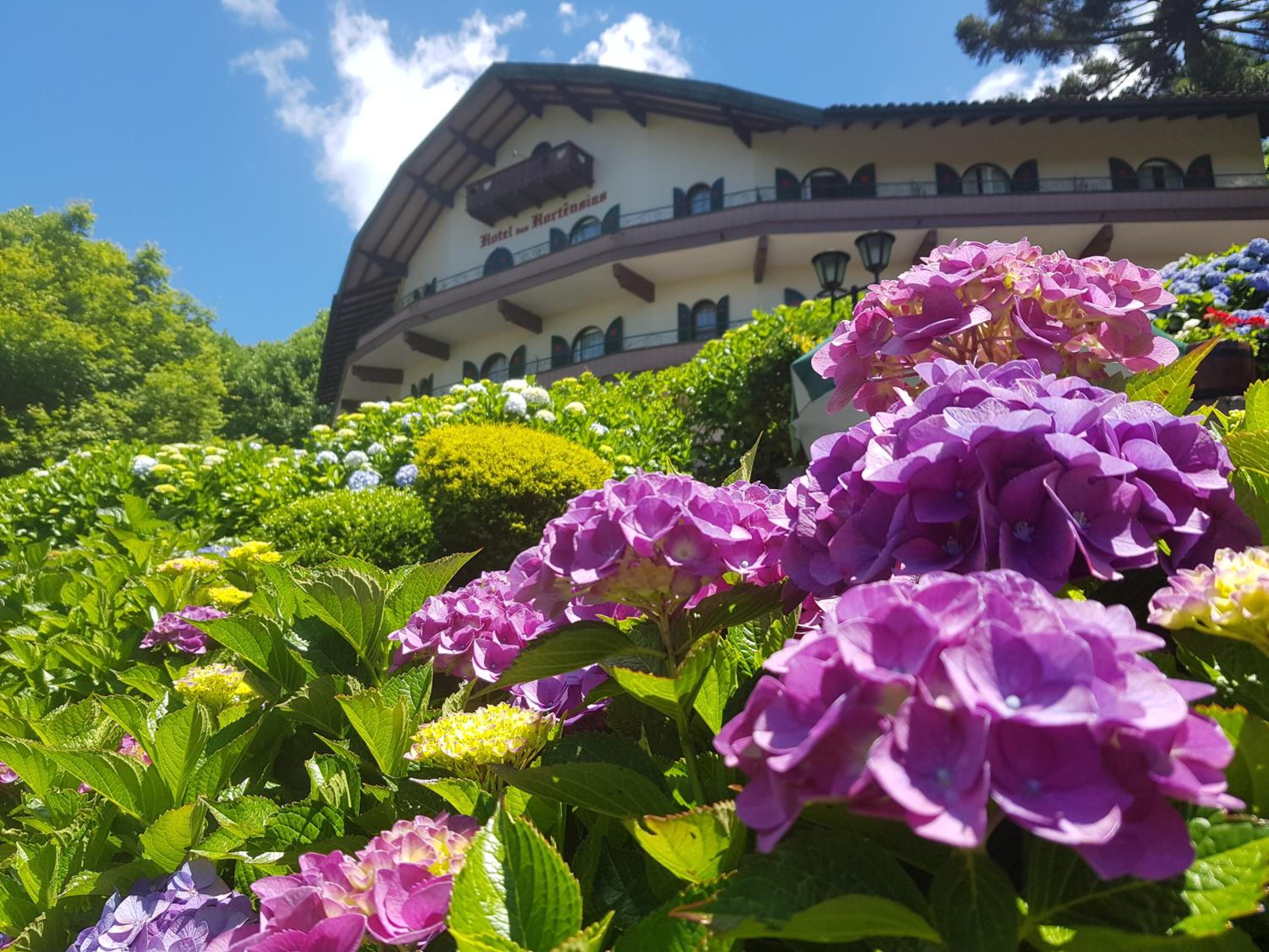 Surrounded by picturesque gardens, Hotel das Hortênsias offers a tranquil escape with its inviting outdoor pool, perfect for a refreshing dip or lounging under the sun.