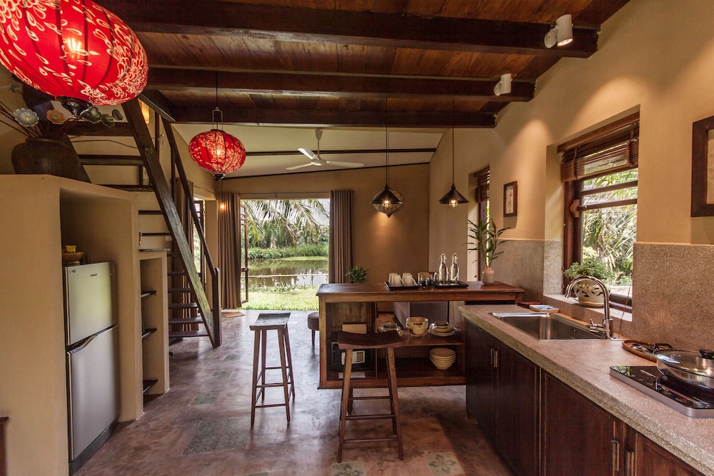 The surrounding scenery is so beautiful and there is a well-organized garden. The staff was so kind and the breakfast was delicious. It took a while to get to Hoian City, but all of them were excellent lodgings. The next time I visit Vietnam, I will use this accommodation again.