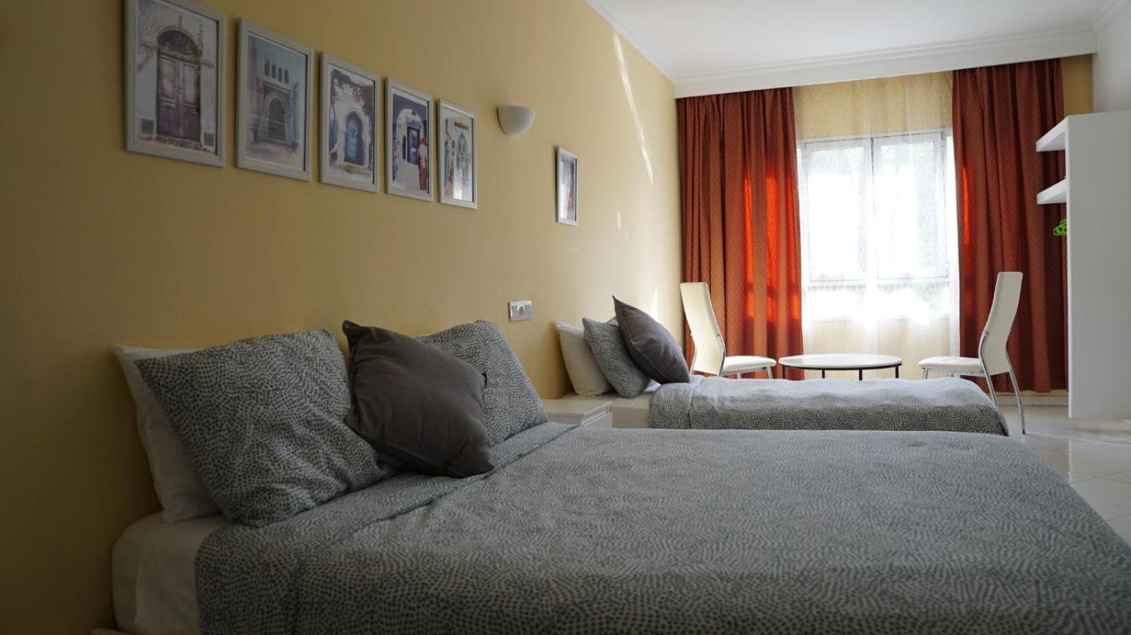 Pros: we stayed in the double room with terrace, and the terrace was large and the view of the sea was lovely. The room was also very big, with a two couch seating area, which could probably sleep a couple of more people. The person who checked us in was very nice and helpful, and the man who was there in the afternoons (can't remember his name), helped us get a private grand taxi direct from Asilah to Chefchaouen for 600 MAD. It's also in a decent location, not far from the medina or promenade, though a bit of a walk to the nicer beaches north of the town. CONS: This is a big one, the bathroom had a horrible septic smell the whole time we were there, and the toilet was dripping from the back making the floor wet. When we told the front desk, their solution was to give us an extra towel to lay down on the floor to soak up the water. We dealt with it mostly because we were exhausted and didn't want to have to pack everything up again to move rooms. The room also had some light switches that didn't work and the bed was a bit sagging, though comfortable enough.