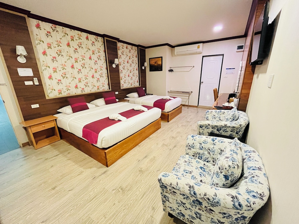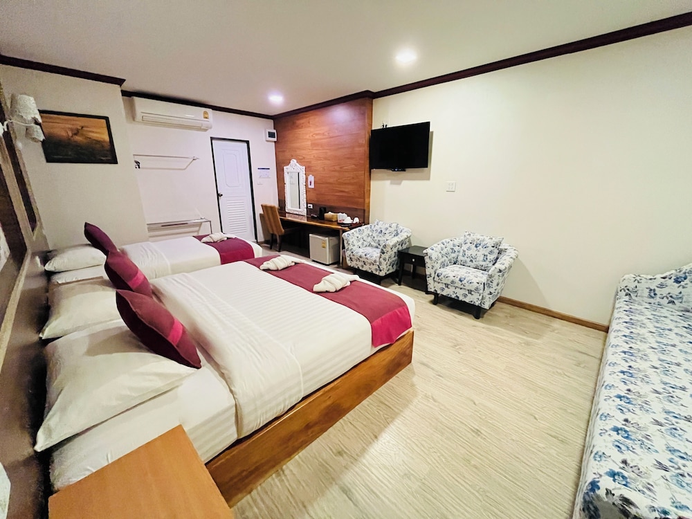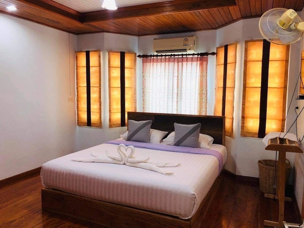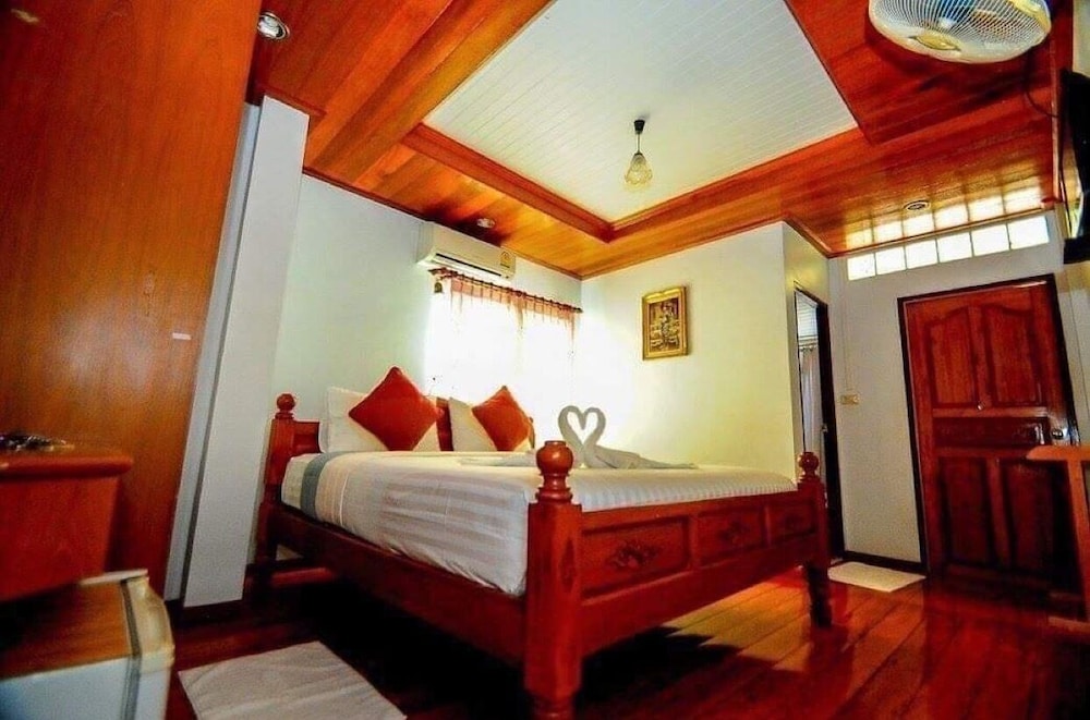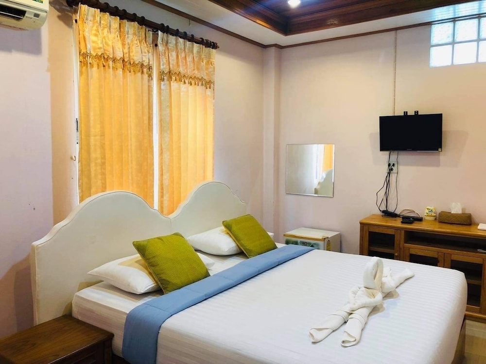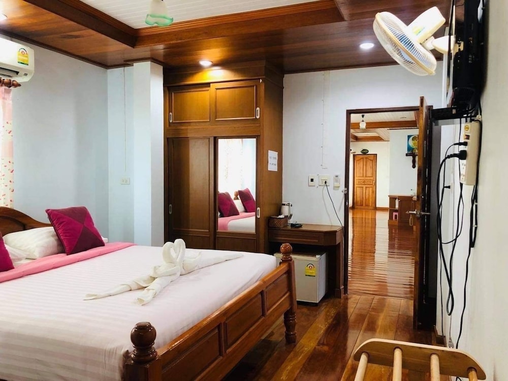 Very friendly lady owner and can speak good English! There is also choice of American breakfast or local rice or congee. Tried authentic Thai milk tea. Room is Only downside is too small signboard and not catchy, plus hotel is just 2-3 units from a road corner. You need to drive there as it’s just in front of a pier. Was driving past and missed using GPS. Entrance is just a small lane into a cafe. It definitely don’t seem like a hotel. Room is clean and fragrance nice smell. Bed is comfortable too and aircon is cold but noisy due to aging…
