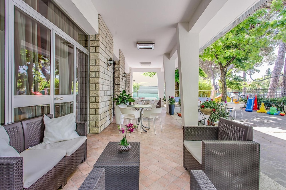Stayed here for 3 nights during a motorcycle trip around Europe. The staff was very friendly and service minded - and we had a pleasant time. It is ca 5 min walk from the beach and a bit away from all the resorts, which I find good. Close walk to Cervia City Centre with a lot of restaurants and bars. It has an old charm to it and the finish is a bit old but for the price it is a bang for the buck.