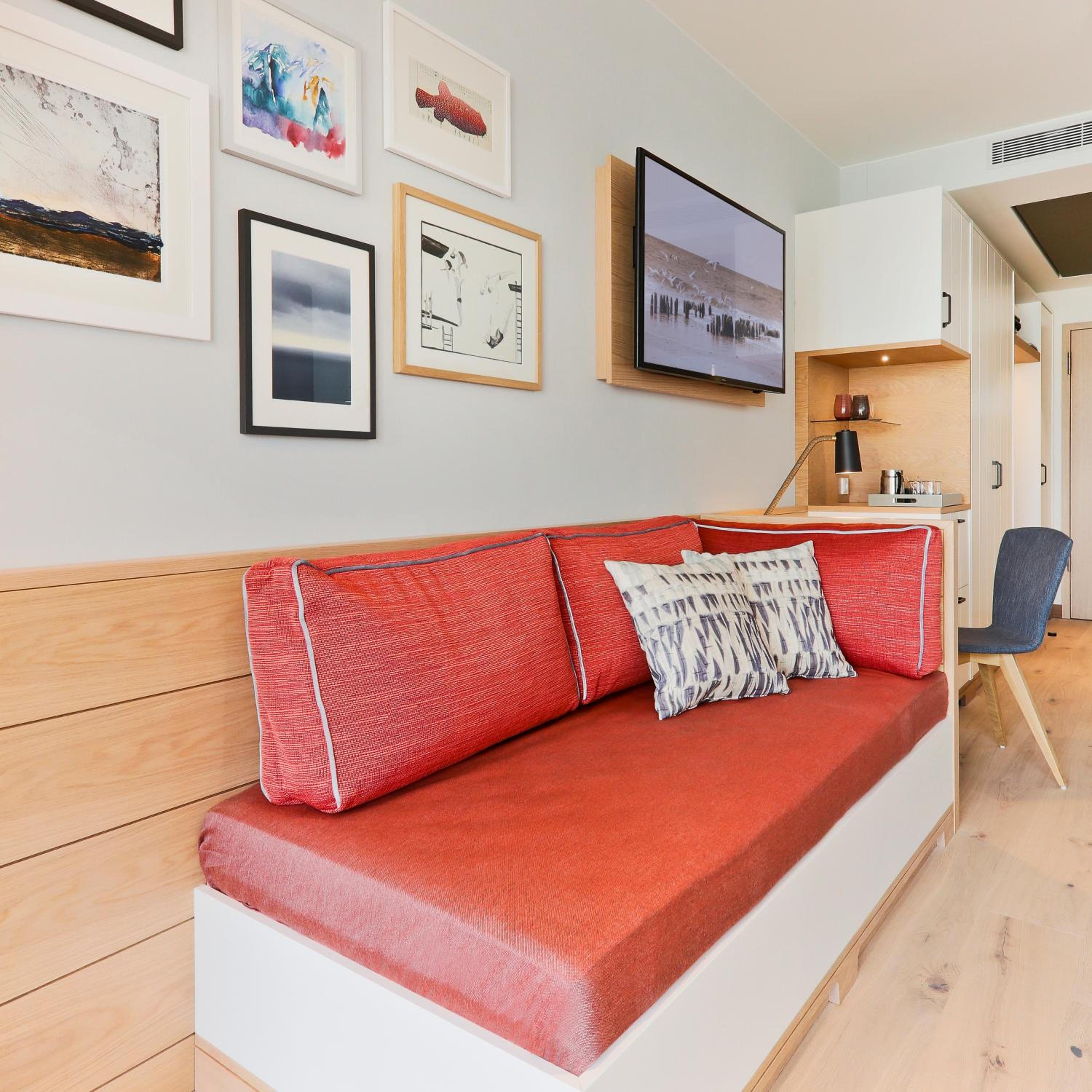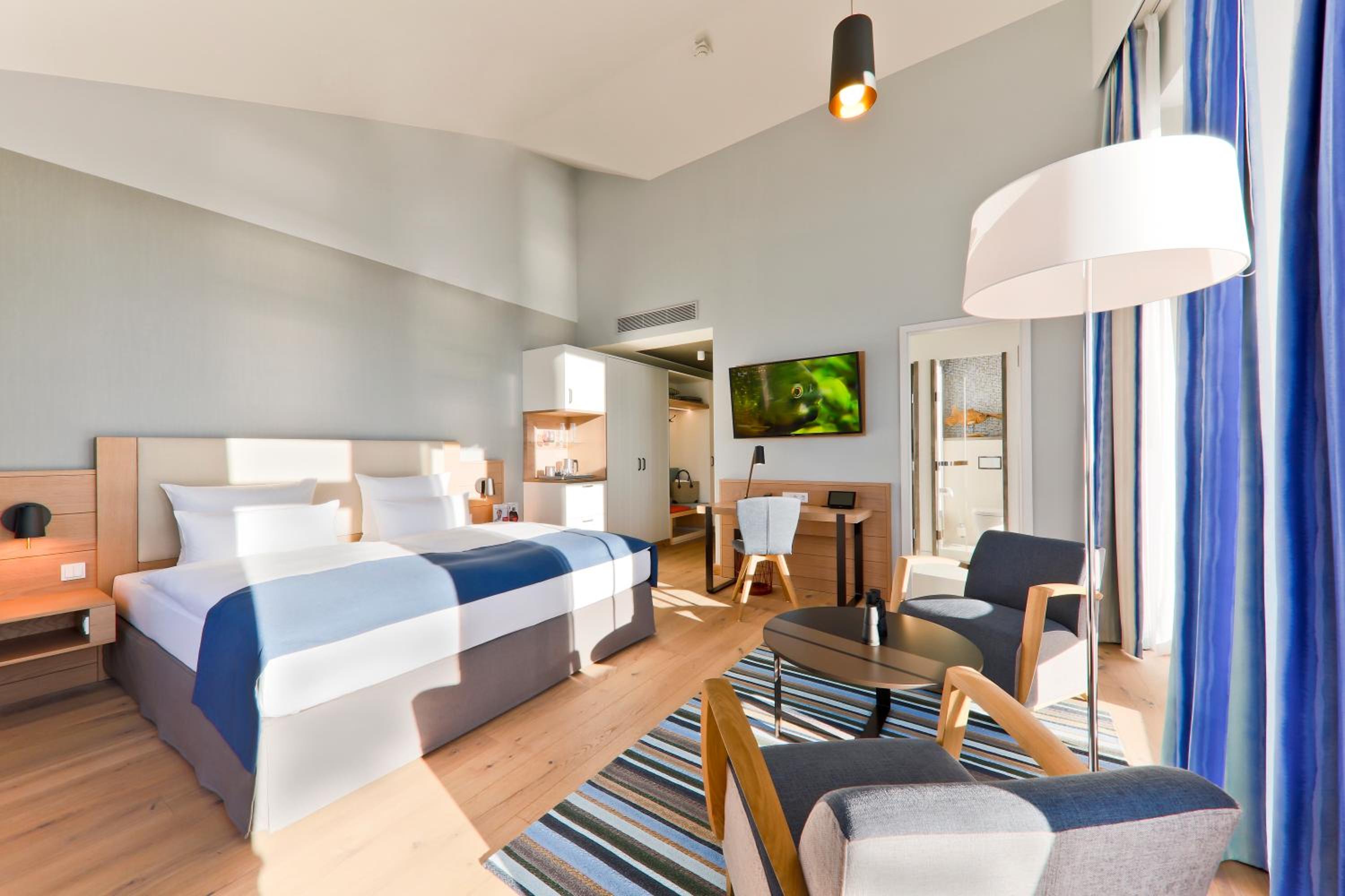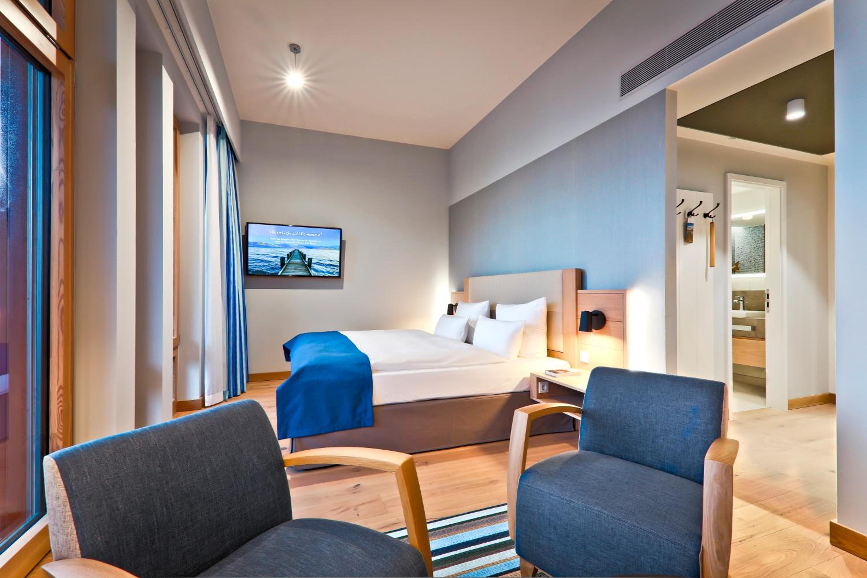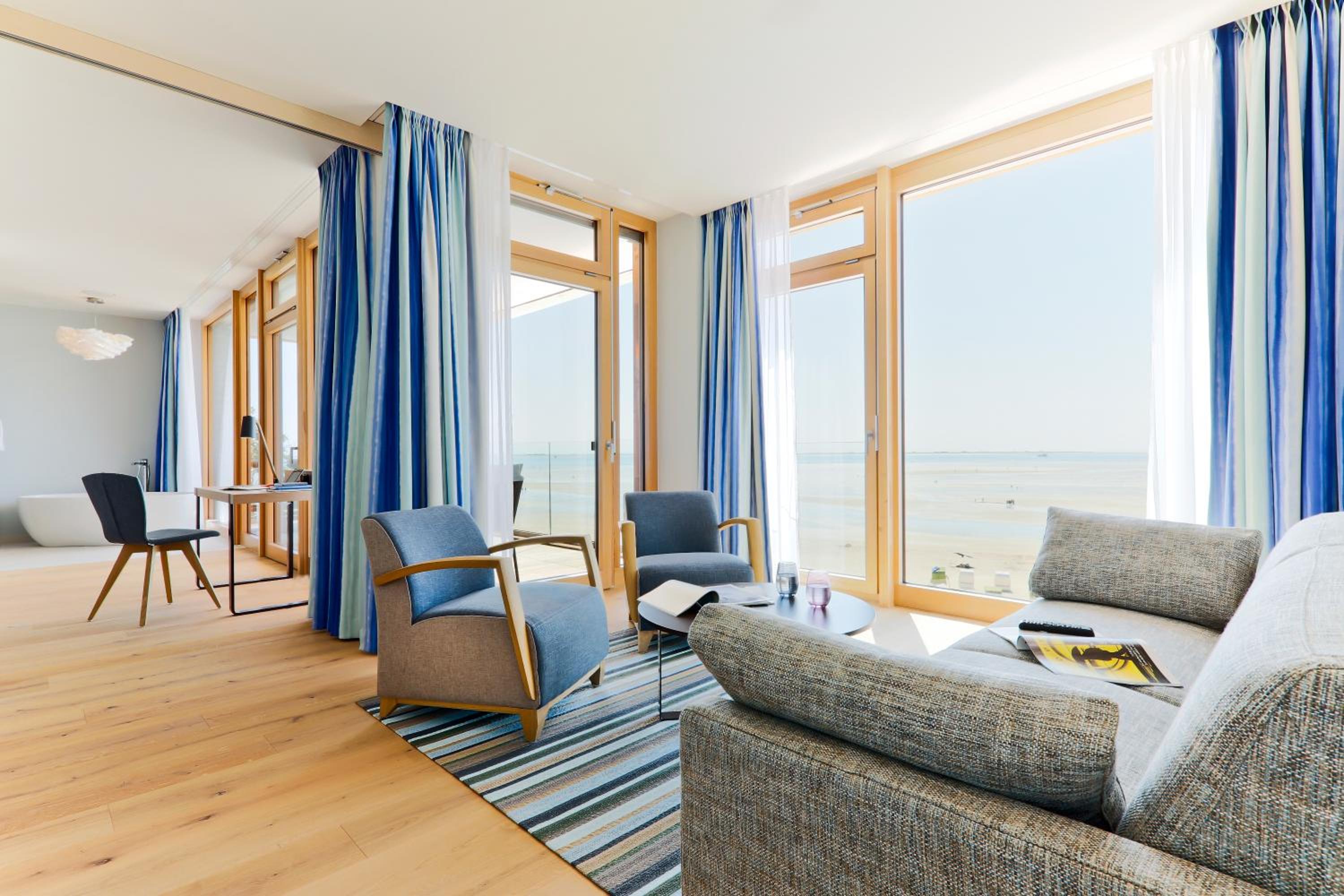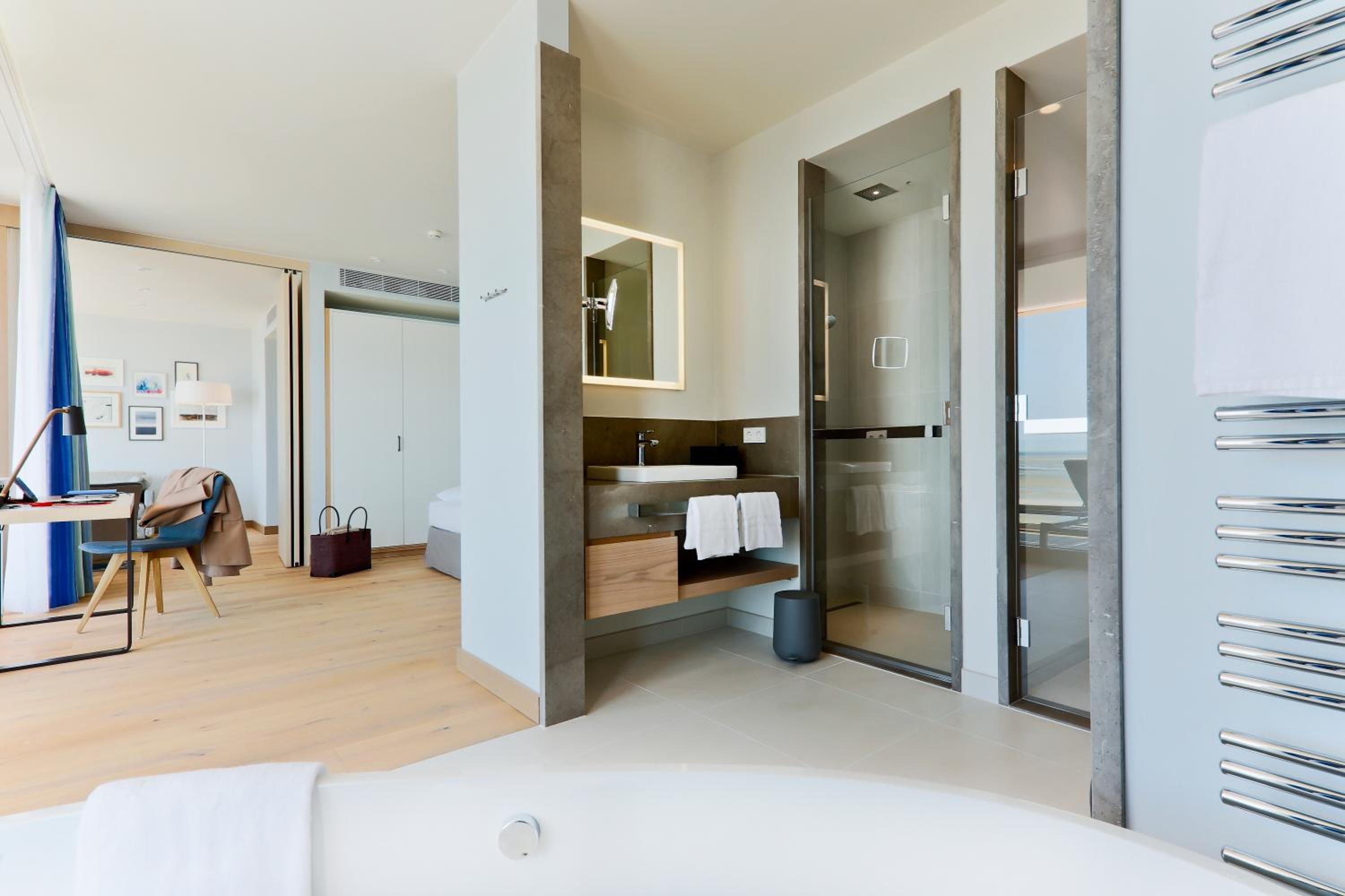 Experience comfort in rooms with modern amenities like flat-screen TVs, sound bars, and free WiFi. Most rooms offer stunning views of the North Sea. With an underground car park and proximity to Wyk town center, leisure activities are just a stroll away.