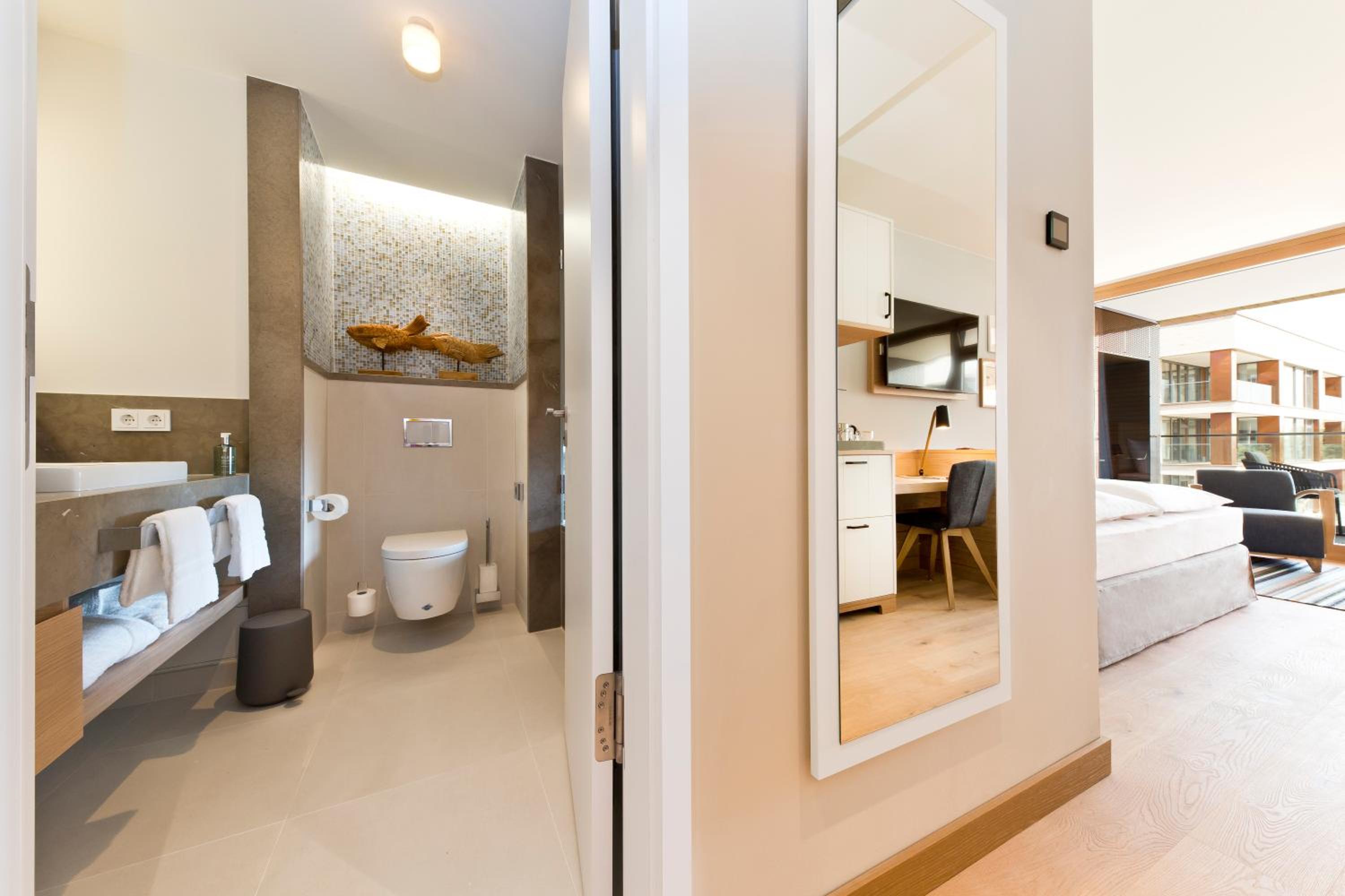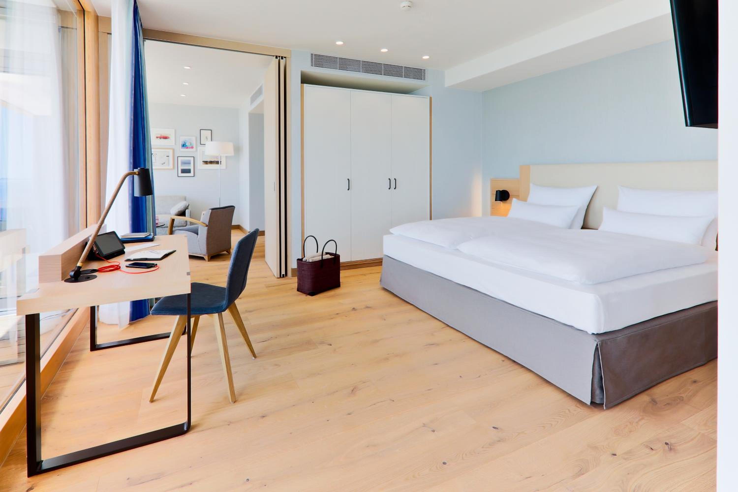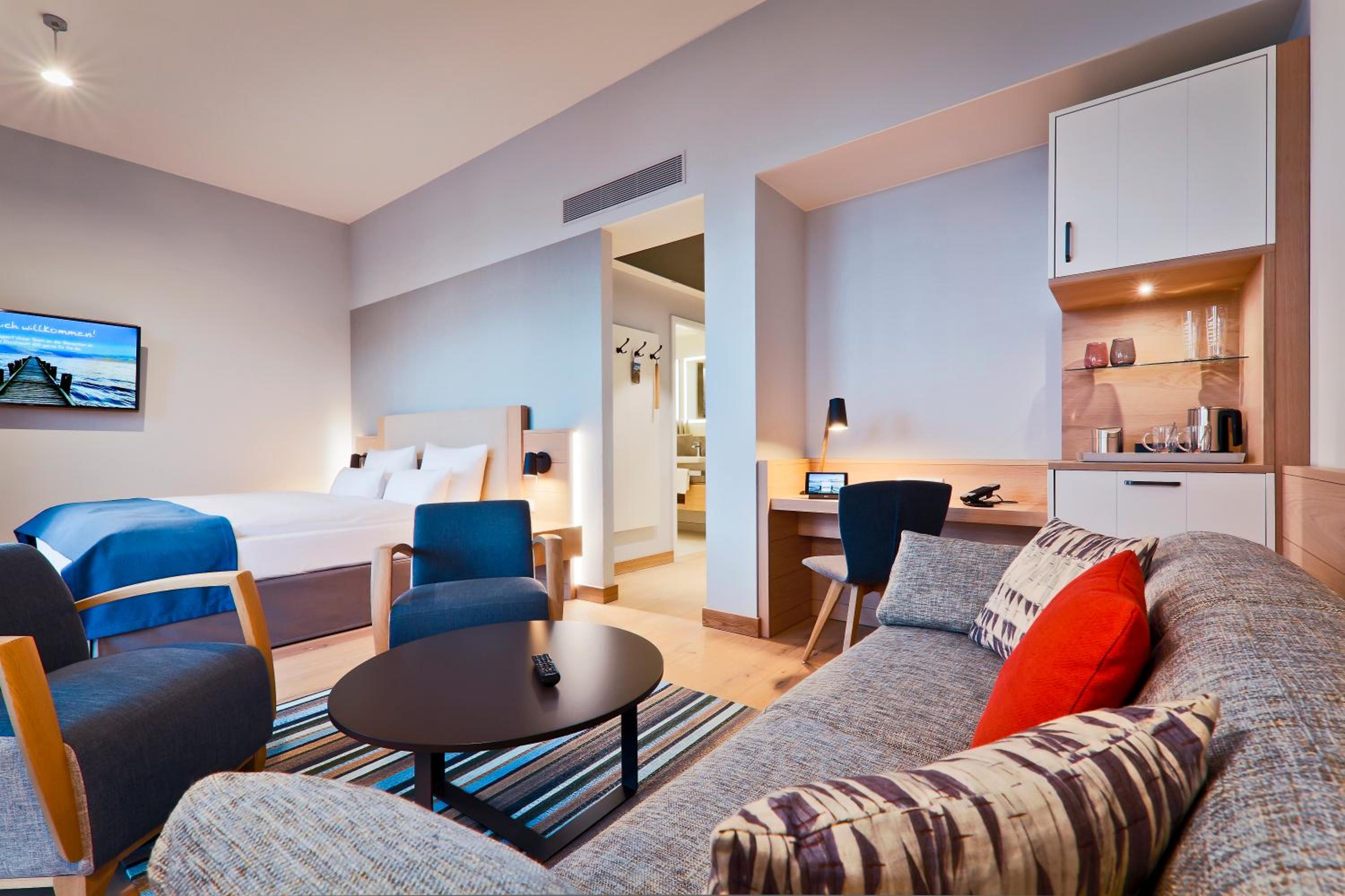 Zimmer ist ein Traum, das Bett himmlisch weich, die aller hochwertigsten Pflegeprodukte, toller Gymbereich. Das Frühstück ist hervorragend. Der Check In war persönlich und man bekommt ein Willkommensdrink gereicht. Einfach klasse.
