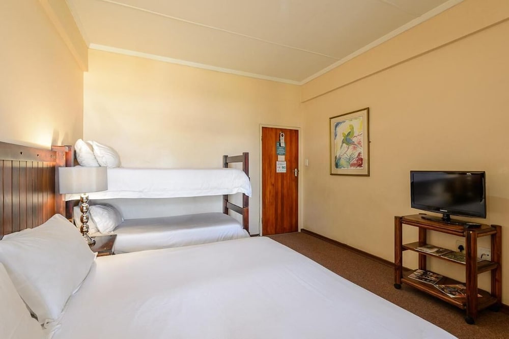 The hotel was definitely a nice place I am sure in its heydays. The place is old where the renovations are done they are substandard. The carpet in the corridor is old and has bad damp smell. The room is definitely spacious compared to other family rooms I went to buy there is an extension added to the room and Yoh in this rain there was a leak and smell of dampness in the room so people with any hypersensitive airways stay away from their place. When it started raining heaving there was active water dripping and to my suprise when o went to complaint it seemed as if I was inconveniencing them. The housekeeper that night Patience was wonderful, we couldn’t be moved as they said they were full. We slept with that water. In the morning never got a courtesy call from the manager not anyone from reception to find out if we slept well or was there flooding in the room, I decided to check out and only when I was giving the key I was told that the manager wants to speak to me I found this totally wrong? Was he not suppose to be proactive and called the room first things after night handover. I didn’t go see him… who is the client? They called me later wanting my banking details to refund me…told them that it’s good customer service to have checked on us in the morning. A refund is there nor there… the breakfast is substandard food is terrible, not even nicely placed…..overall terrible experience this place should not be rated at all I give it 0%