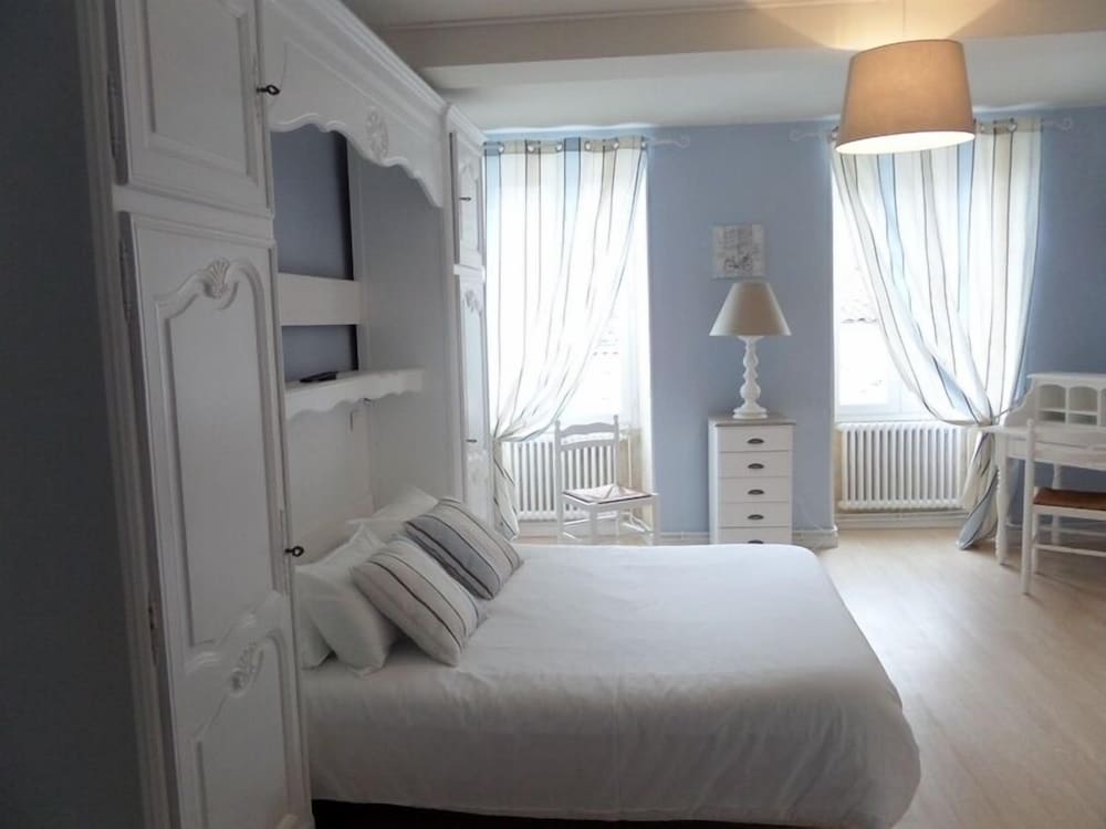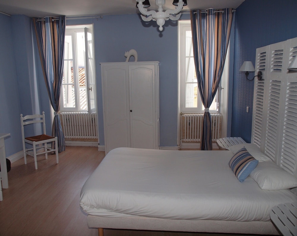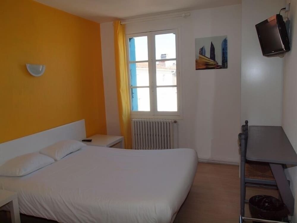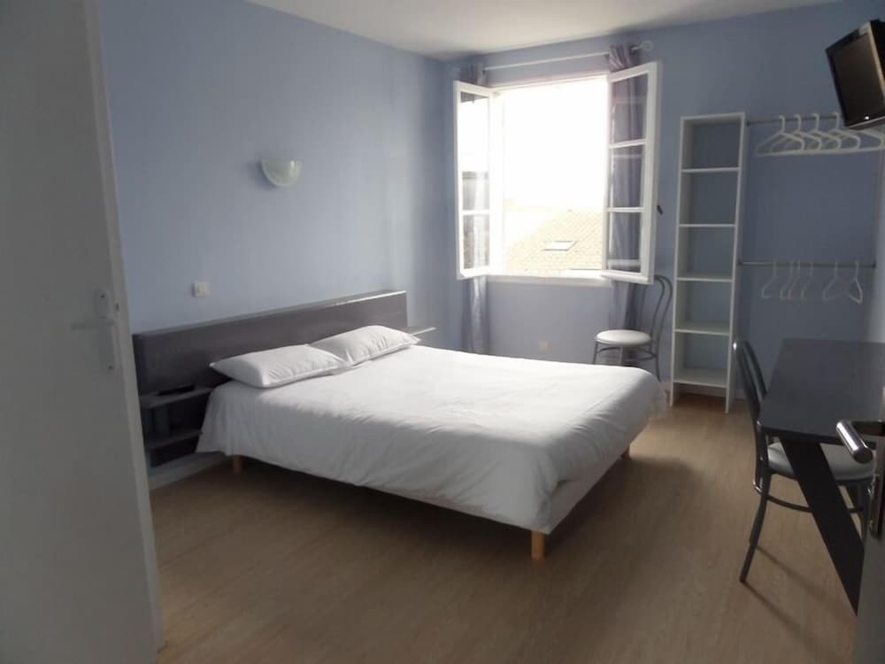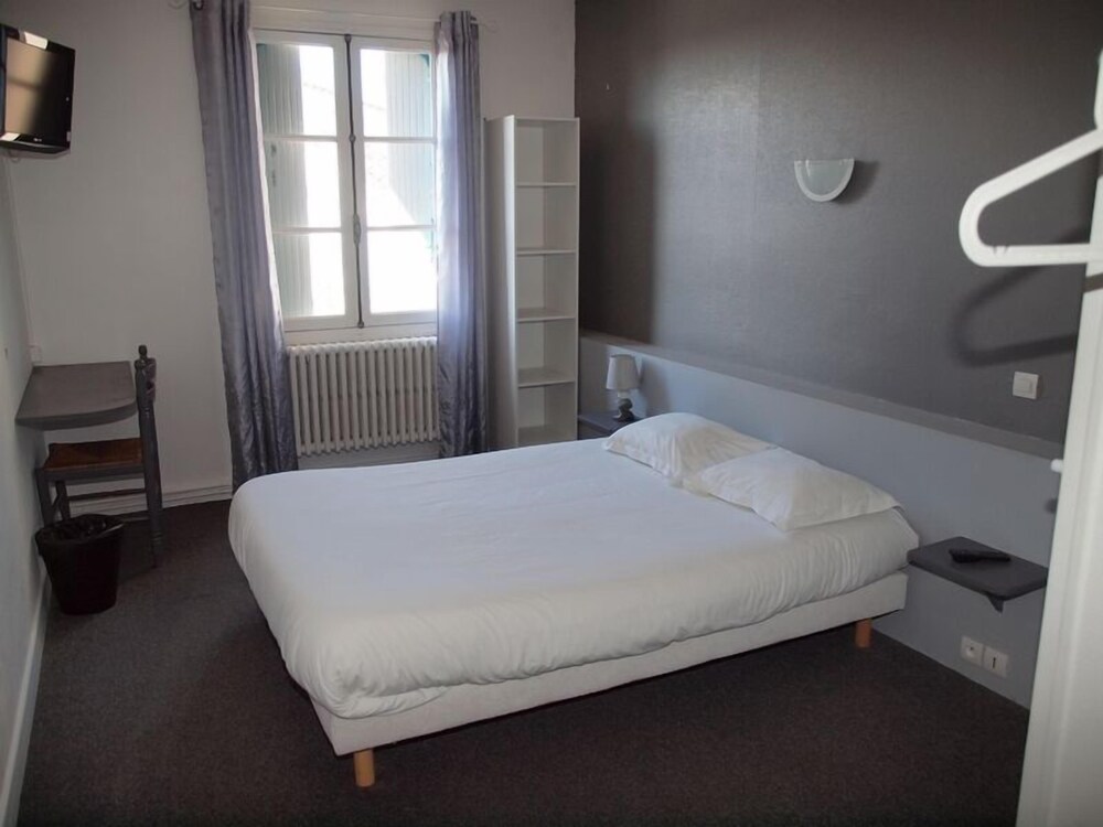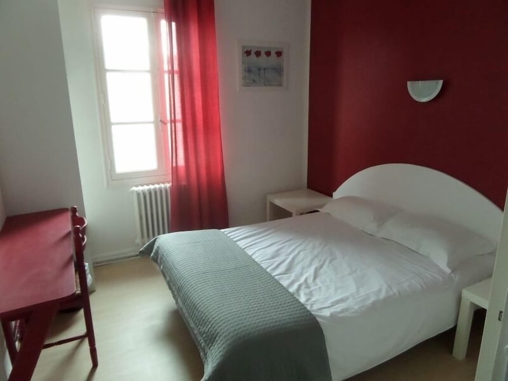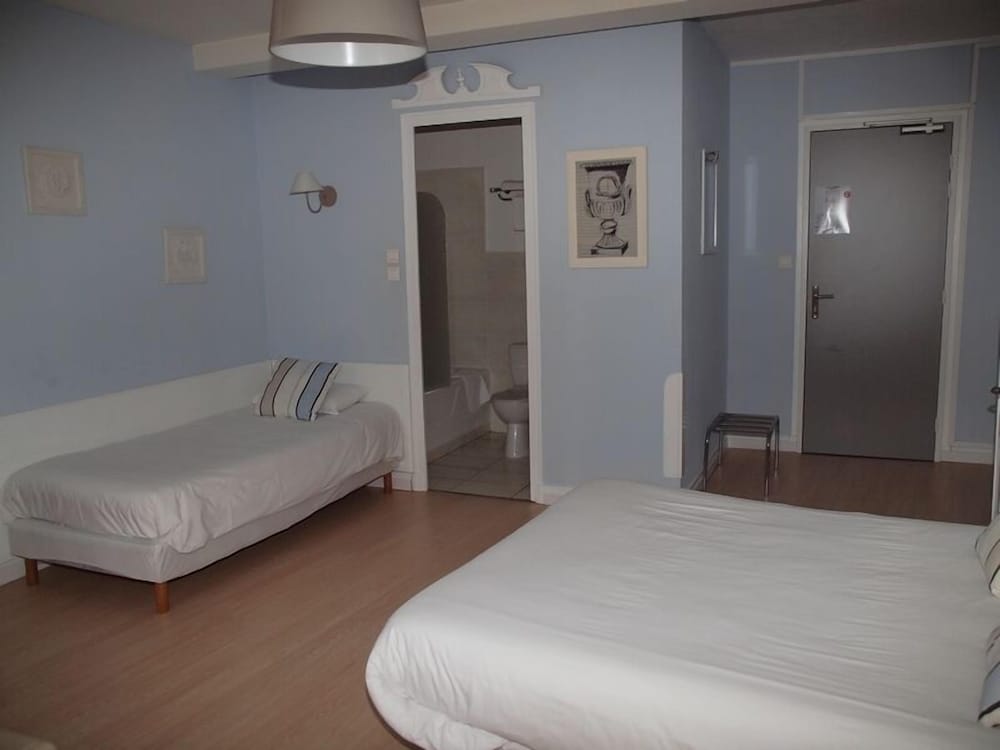 Hotel raffraîchi en plein centre de Jonzac, ce qui lui confère une situation d'exception. L'hôtel est calme mais les planchers craquent (ce qui fait que si vous avez une chambre au-dessus, vous entendez le déplacement des gens). Personnellement, même si il sonne à chaque heure, le clocher de l'église proche n'a pas été un souci. Le petit déjeuner est copieux mais sans prétention (très classique : pain blanc, croissant (pas de pain au chocolat proposé), très bon café. Ma seule contrariété vient du fait que la chambre est affichée 55 € et le petit déjeuner 4,90 € et que nous avons payé sur hotels.com 75 € la nuit pdj compris pour 2 ; d'autant que 55 € rend le rapport qualité/prix plus juste. A noter que notre chambre donnait sur les toits, ce qui devait la rendre plus calme.