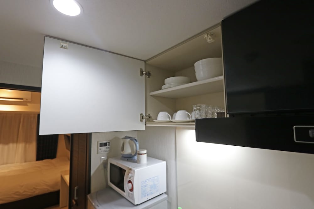 awesome stay for trip down town tokyo. I love the small kitchen and complementary water bottle.