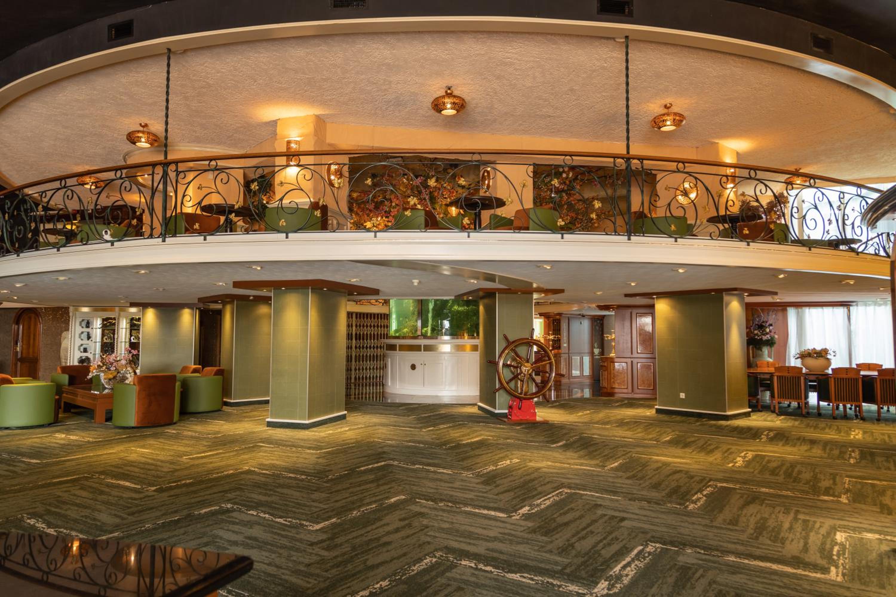 Beeindruckendes Foyer durch die Treppen die Dekoration sowie dem Aquarium.