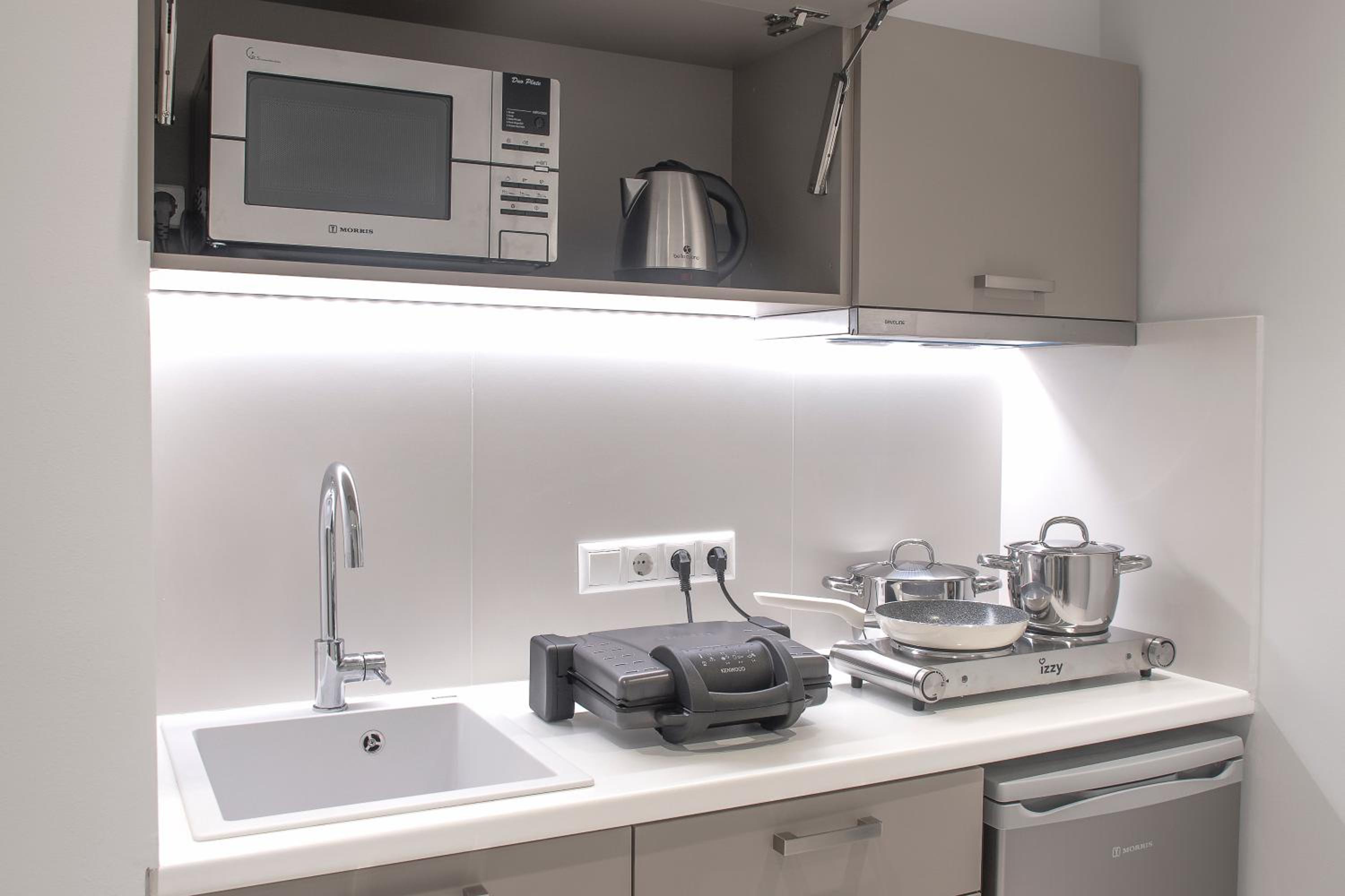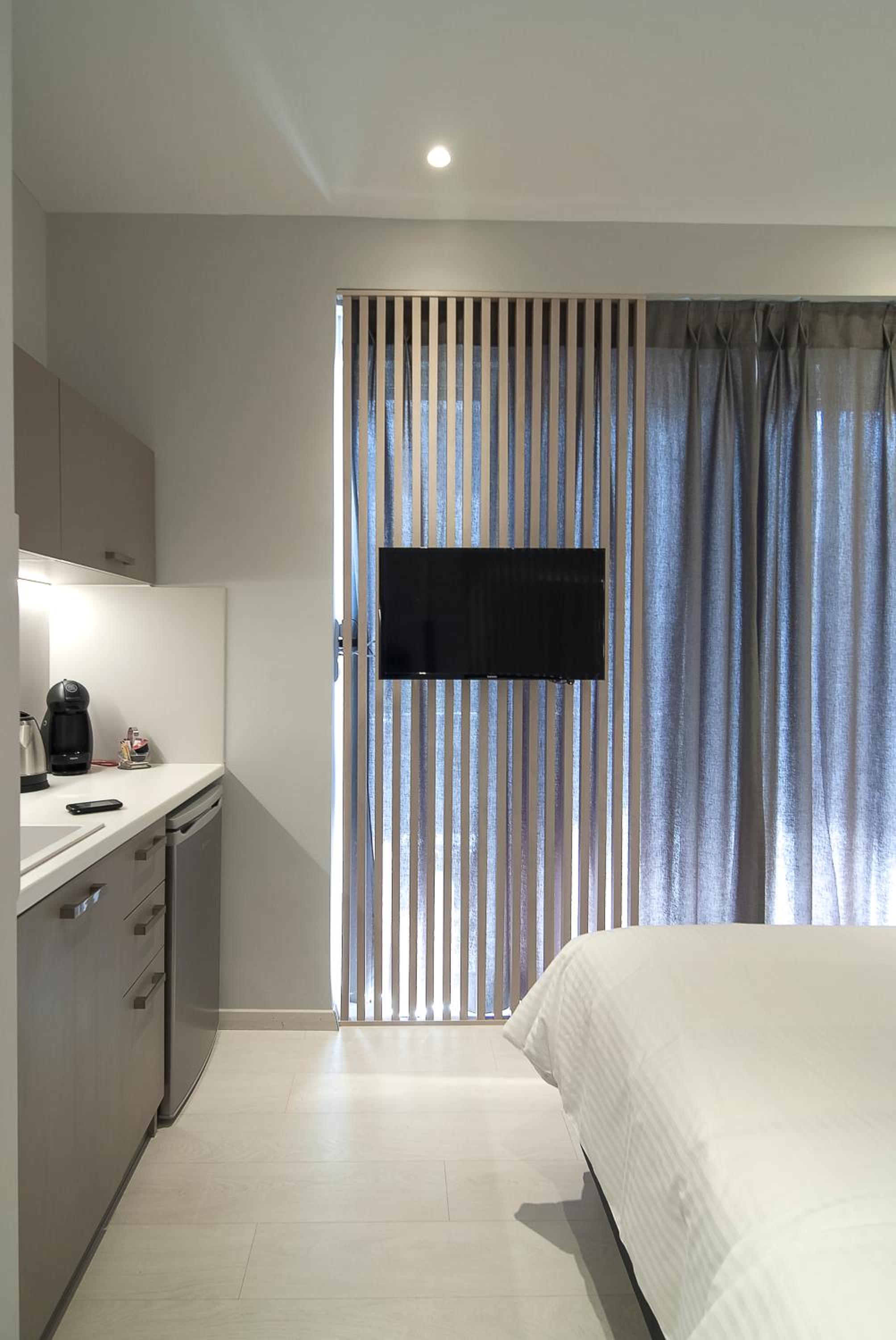 Очень удобно расположенный отель: недалеко от Акрополя, близко от метро, рядом с оживленной туристической улицей и при этом немного в стороне. Поселение вечером было самостоятельным, но очень нетрудным, потому что инструкция была изложена очень понятно. В номере очень чисто, и, хотя я успел воспользоваться только кофе-машиной, наличие мини-кухни есть безусловное достоинство. Кроме того, за углом есть очень неплохой ресторанчик, открытый все 24 часа.