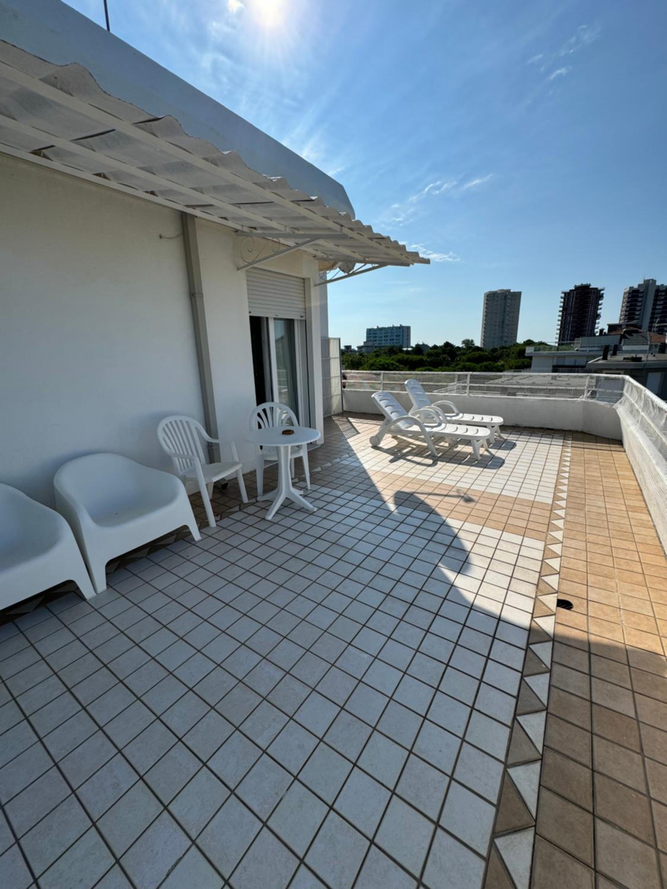 Guests can unwind in the swimming pool with hydromassage jets on the expansive sun terrace, perfect for soaking up the sun in style.