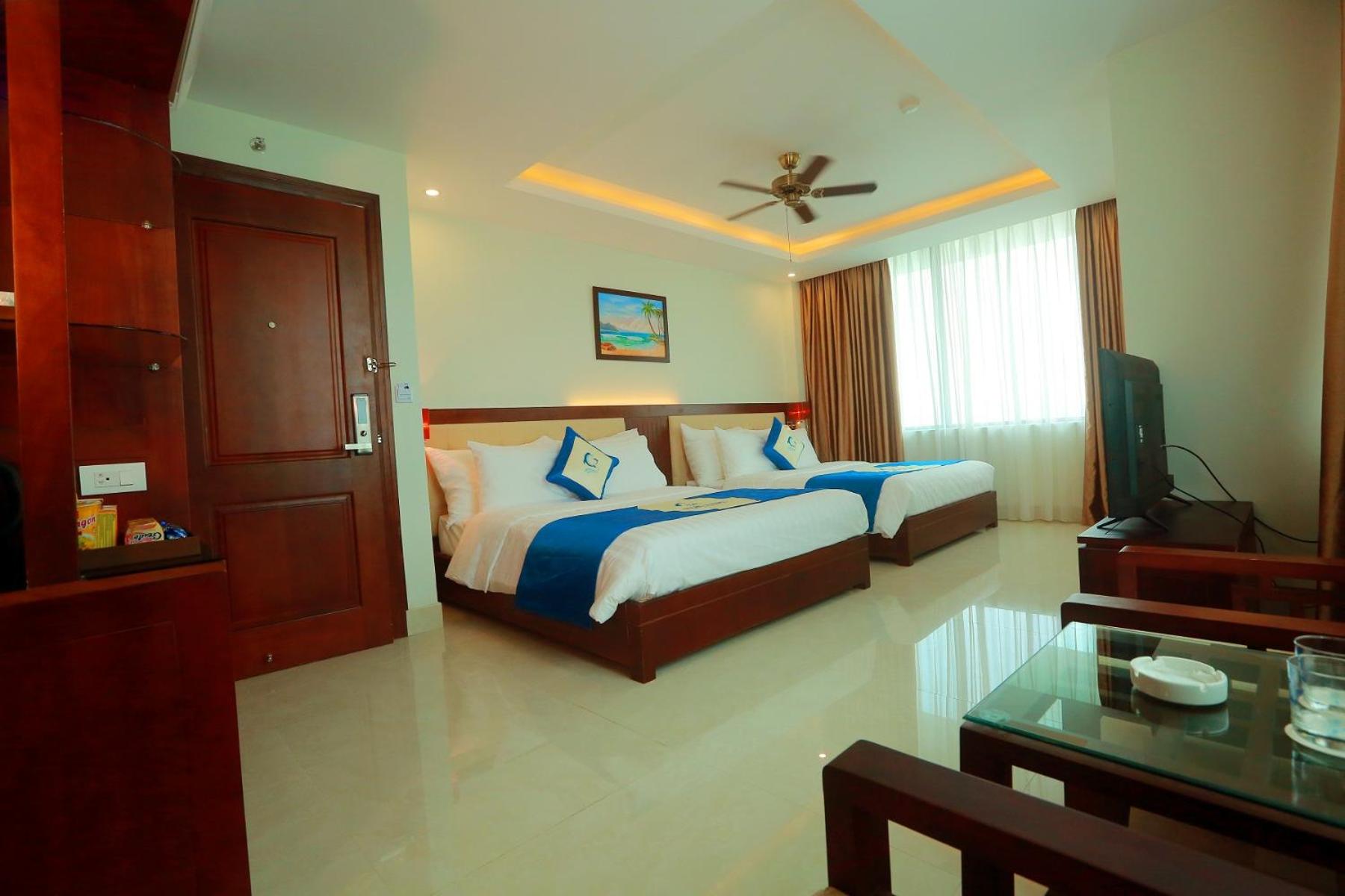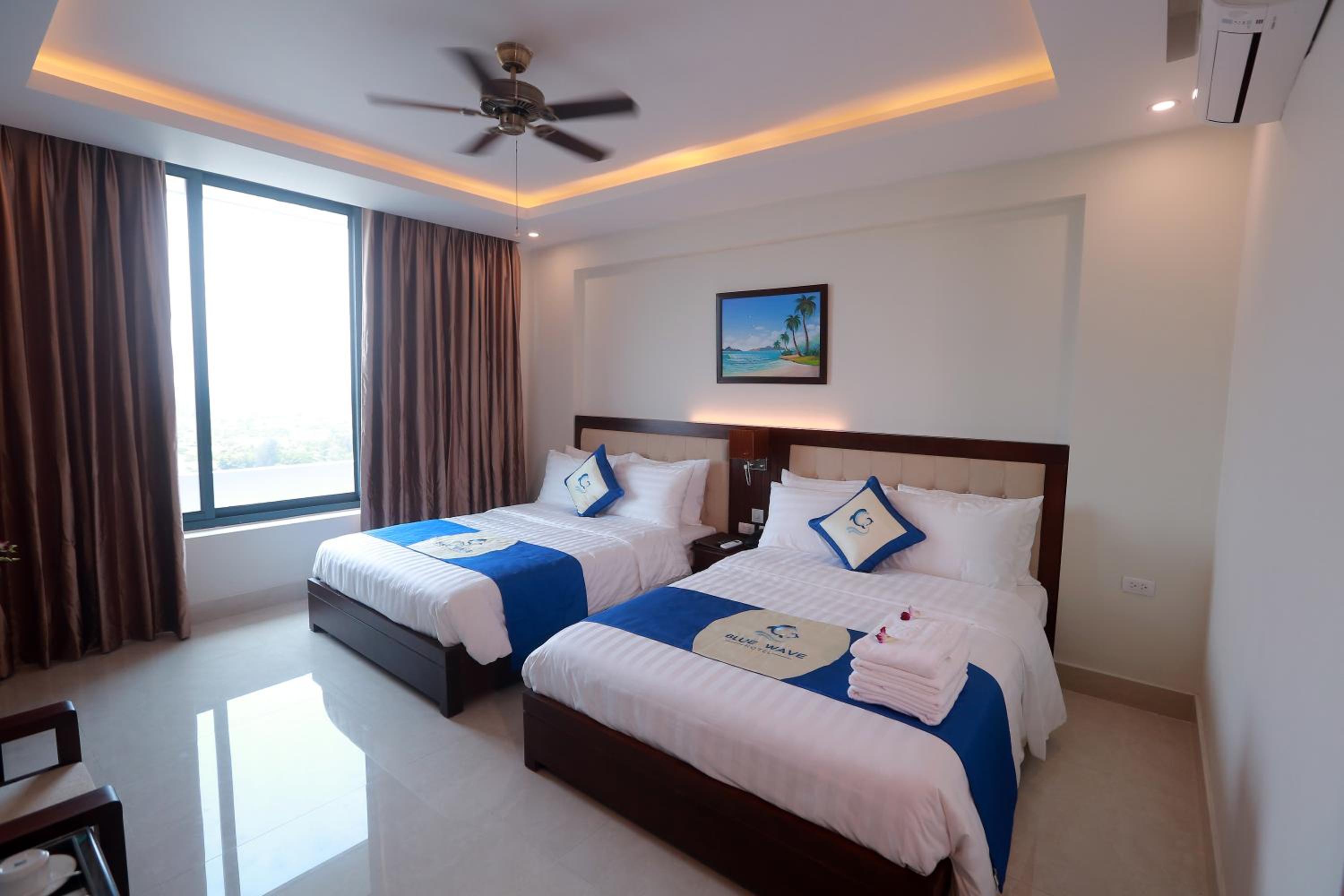 Blue Wave Hotel, nestled in the heart of Cửa Lò just 300 meters from the stunning Cua Lo Beach, offers guests a luxurious stay with air-conditioned rooms equipped with modern amenities like a flat-screen TV, minibar, and private balcony.