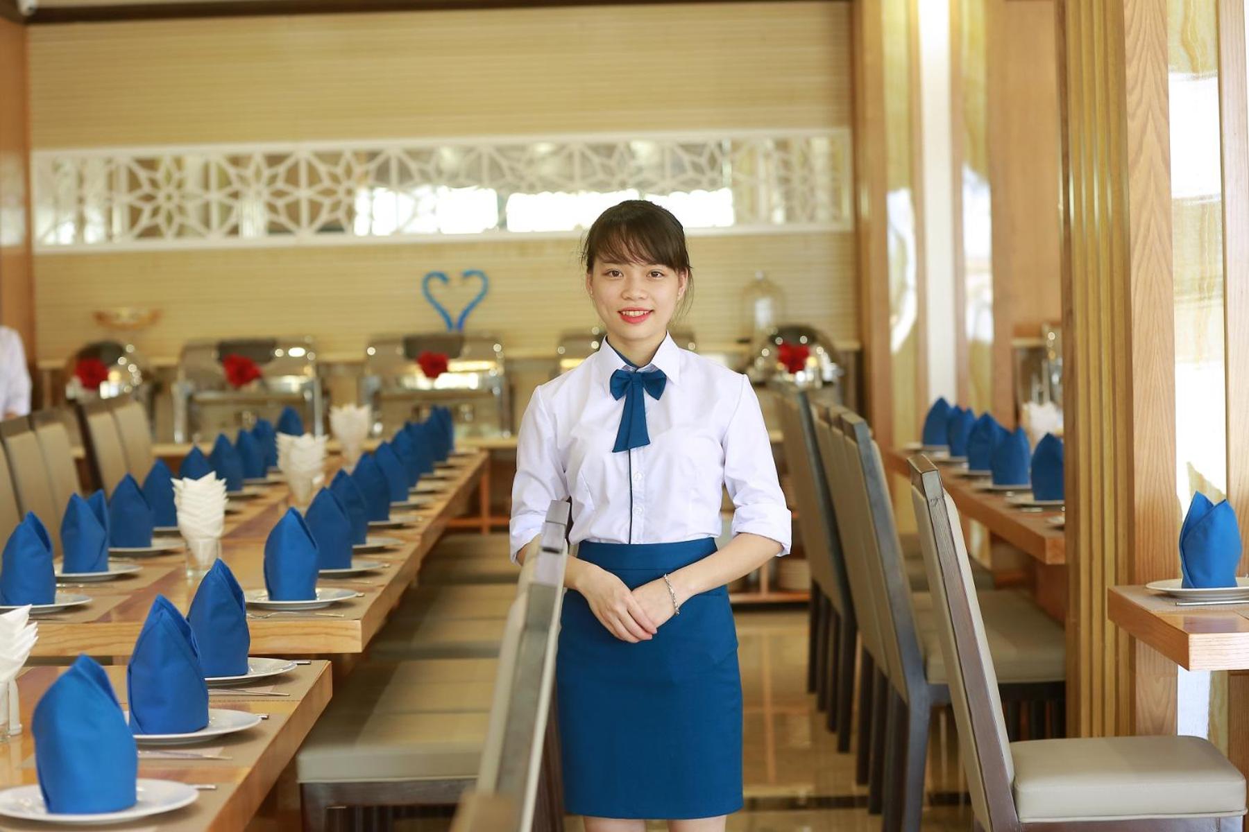 We spent one night in Cua Lo on our driving tour of Vietnam and chose the Blue Wave because they agreed to let us stay with our dog, which most hotels in the area would not. We were grateful to have a clean air-conditioned room to sleep in, but the hotel staff and, indeed, all of the services in the area seemed to be focused on accommodating Vietnamese family tourists. Staff was generally friendly when they weren't overwhelmed by the press of families on vacation, but just weren't set-up to accommodate Westerners. Breakfast was perfectly acceptable, but for dinner, both of the hotel restaurants seemed to be operate as family buffet/karaoke bars, and we found nothing nearby other than open-air seafood shacks without English-language menus (making eating an adventure for a couple of Americans without Vietnamese language skills). At check out the staff offered us a parting gift of souvenir glasses with the hotel's logo on them, and we hate to not give them a rave review, but, to be honest, we have to say this may just not be the hotel or the neighborhood for Western tourists .