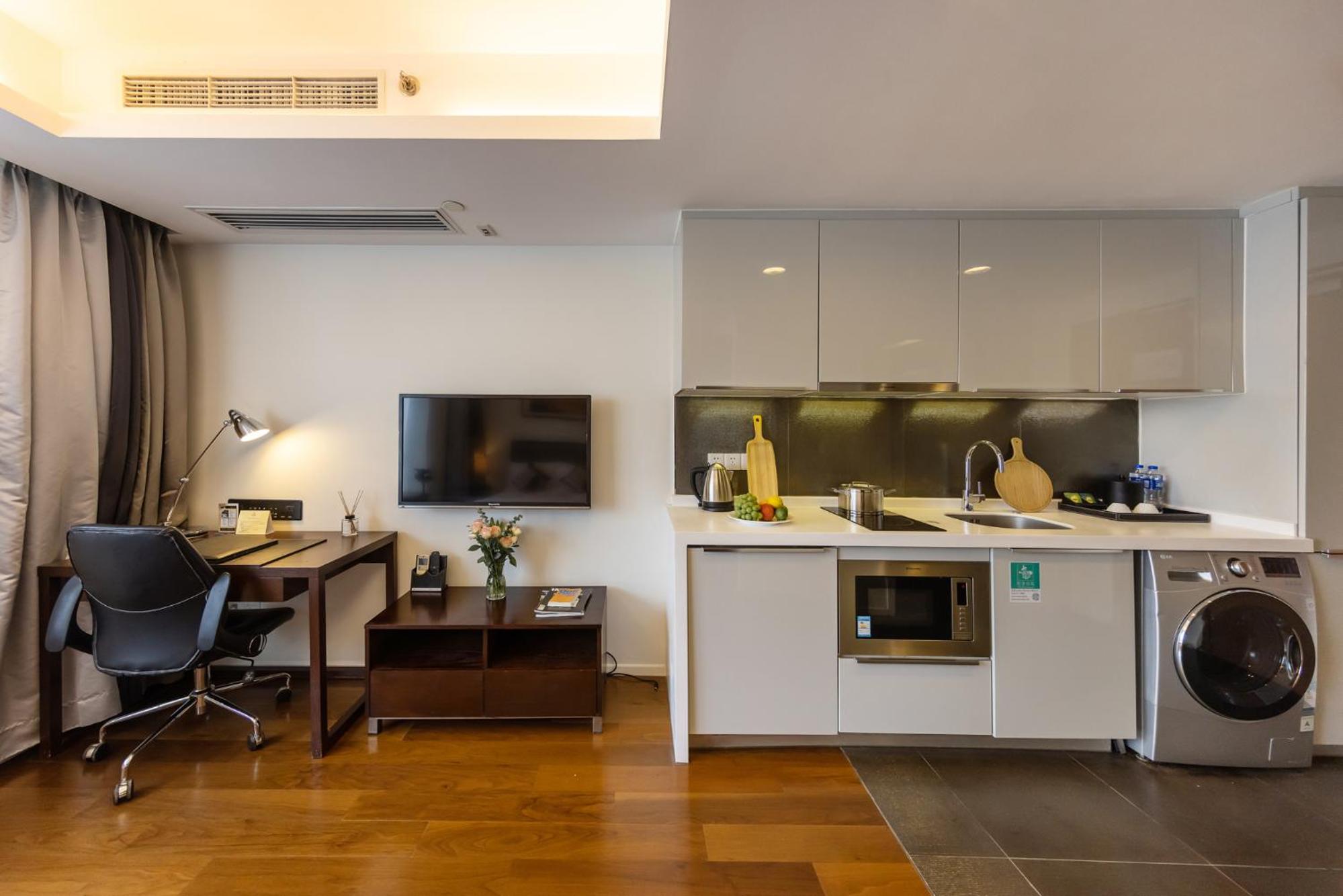 Belles chambres confortables avec un lave-linge dans un coin cuisine. Les chambres sont faites tous les jours avec soin. L’hôtel est situé à 13 minutes à pied de la gare, très pratique pour rayonner autour de Shanghai
