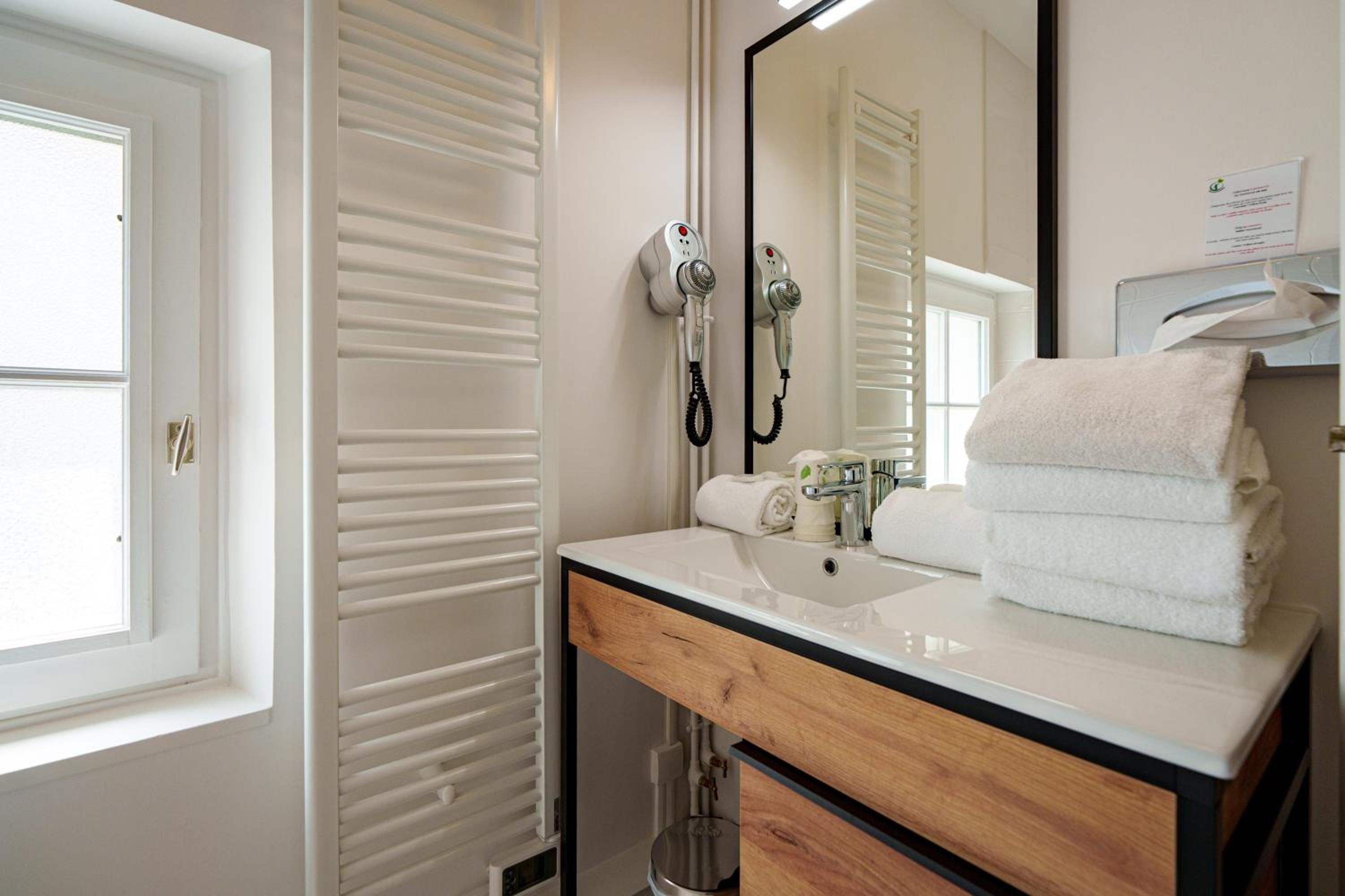L'emplacement en centre-ville avec un grand parking de disponible, la chambre familiale pour 4 personnes : un lit double et 2 lits simples, la salle de bains très fonctionnelle. La propreté de la chambre et des parties communes de l'hôtel étaient conformes à nos attentes.