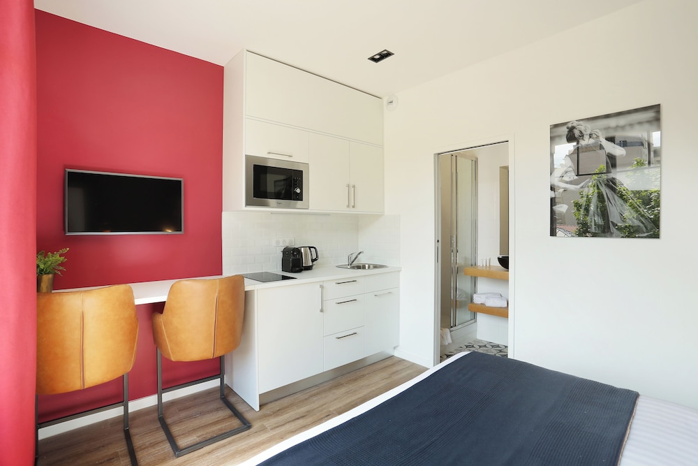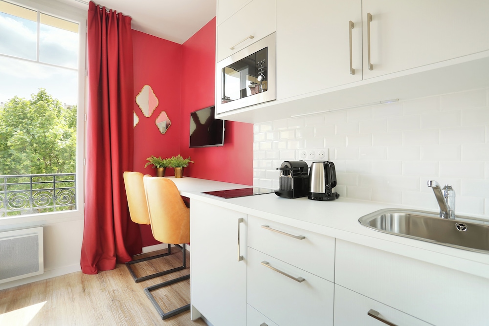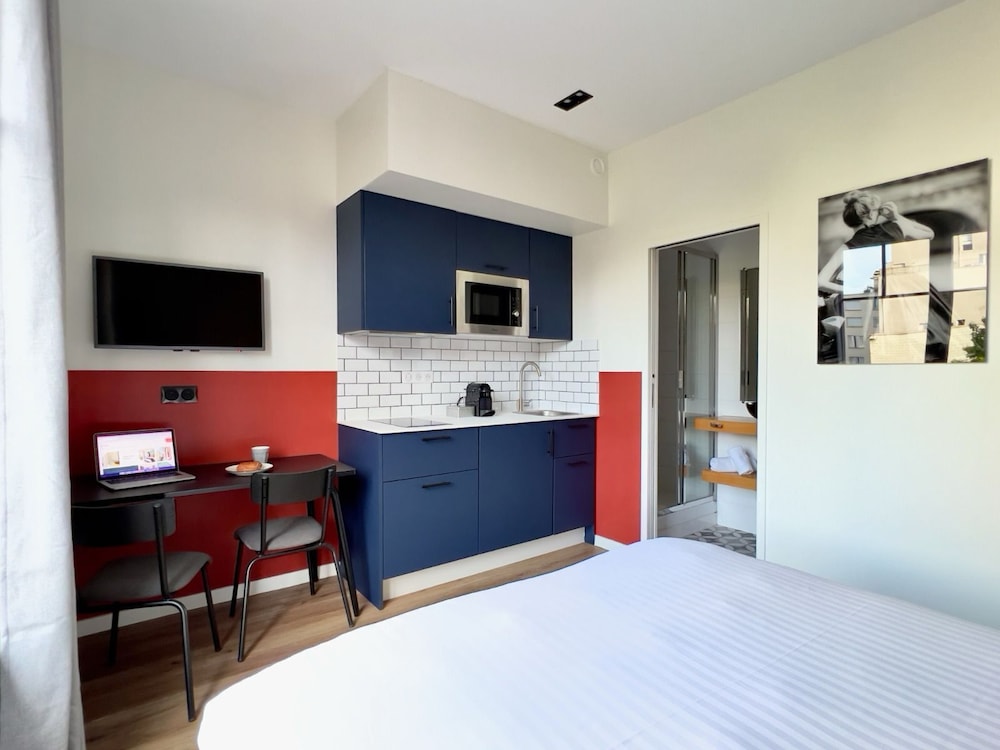 Very modern room with a comfortable bed and great shower! Kitchen well equipped. Room was a good size (bearing in mind this is Paris) and had very good lighting even by North American standards. There are two metro stations nearby on different lines which makes getting around easy. The neighbourhood has multiple grocery and specialty food stores (bakeries, butchers, fish, cheese, wine). There is a school across the street but I can’t see this is a problem unless you are a late riser. We actually enjoyed watch the kids arrive and play in the yard.