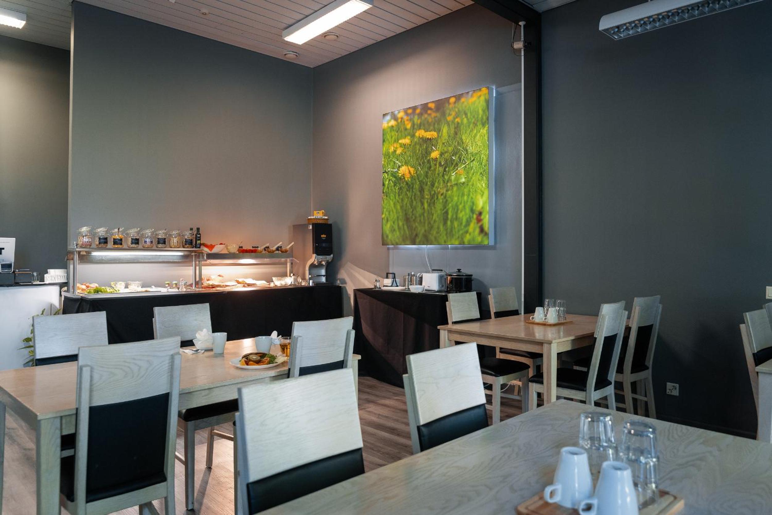 Kahvikone ei aamulla toiminut ja aamiaishuone oli vähän ahdas, mutta aamiainen oli ihan ok.