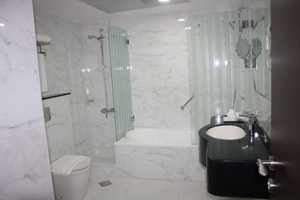 Experience a stay at Al Salam Grand Hotel Sharjah where we offer a health club, an outdoor pool, and a sauna for ultimate relaxation. Enjoy complimentary Wi-Fi, concierge services, and babysitting. Indulge in international cuisine at Al Salam restaurant or grab a coffee at the cafes. For business needs, benefit from the business center and free valet parking. Our rooms feature minibars, LCD TVs, and deep soaking bathtubs. Explore nearby attractions like Expo Centre Sharjah and Al Mamzar Beach. Conveniently located in Sharjah, a short drive from Gold Souk and City Centre Deira. Don't miss out, book your stay now at Al Salam Grand Hotel Sharjah!