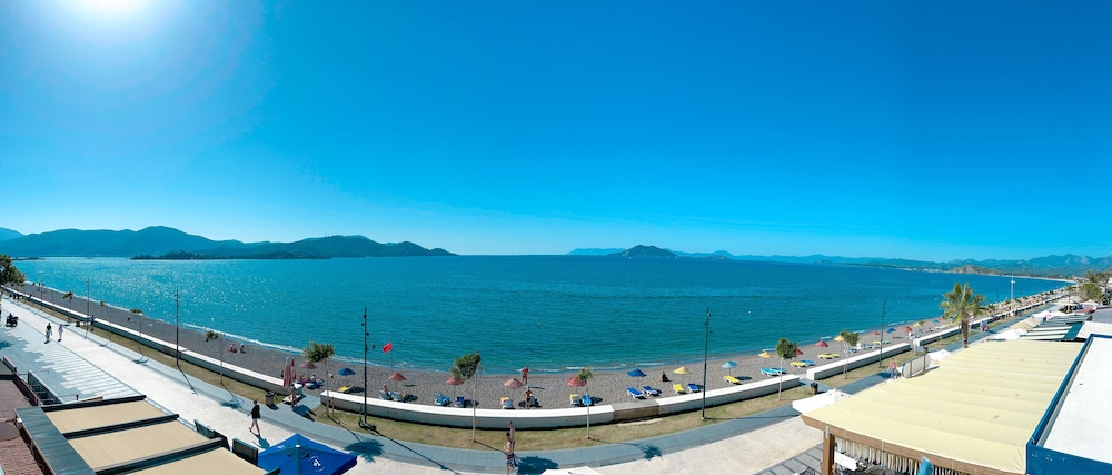 Great 2 week stay here, great welcome from staff who are always smiling and helpful to guests. The cleanliness is brilliant, Lovely cleaning ladies always with a big smile on their faces and we were met daily with warmth and sincere welcome from the bar guy and lovely lady on reception. Fantastic view right on Calis beach which at sunset is stunning.